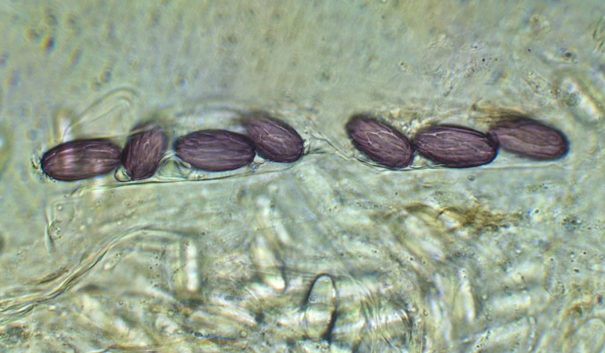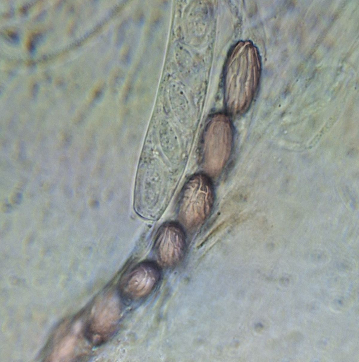 Sporen 18-20*9 µm. Schmale pigmentierte Paraphysen, teils geringfügig dicker am Ende.