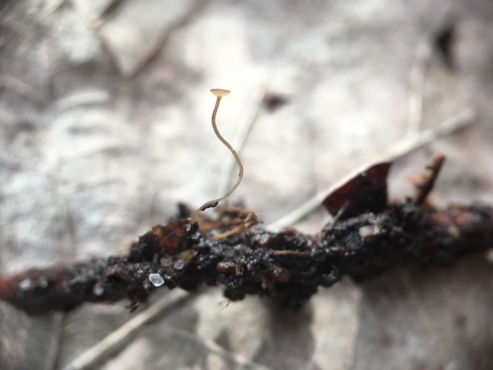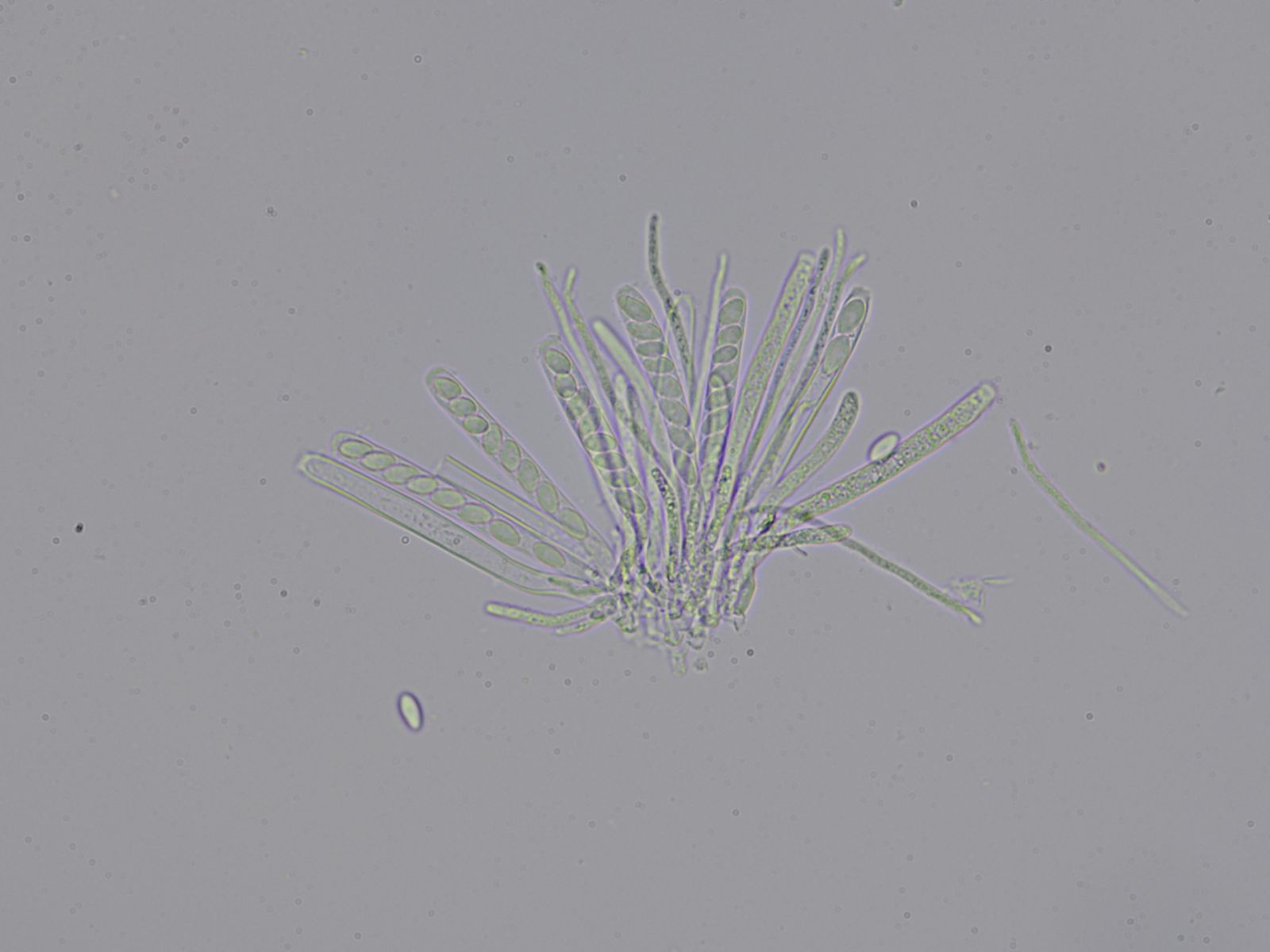 Hallo zusammen, als ich das Helicosporium aufhob fand ich daneben noch ein sehr graziles Stielbecherchen im Eichenlaubdetritus. Der Hutdurchmesser betrug 1,2mm, der "Stiel" war mit 22mm in Relation extrem lang. An seinem Ende fand ich ein Sklerotium. Oder zumindest meine ich das, mitterweile kommen mir Zweifel und ich ärgere mich dass ich es nicht durchgeschnitten und mikroskopiert habe. Vielleicht war es ja auch irgendein Same. Jedenfalls hatte dieses runde schwarze Gebilde einen Durchmesser von 1,5mm. Von den mir bekannten Skerotienbechern passt keiner. Ciborinia candolleana hatte ich nach einer Recherche "in Sonneberg" noch in Betracht gezogen, der hat aber spitzere Sporen, die hier sind eher ovoid. Von den Sporen passt nach meinen Aufzeichnungen a.e. Ciboria conformata, der um diese Jahreszeit allerdings auf zersetzten Erlenblattadern wächst. Auch in Richtung Samen habe ich gesucht, da gibt es zB Ciboria ploettneriana, die an Veronica Samen wächst, aber ebenfalls von den Sporen her nicht passt.