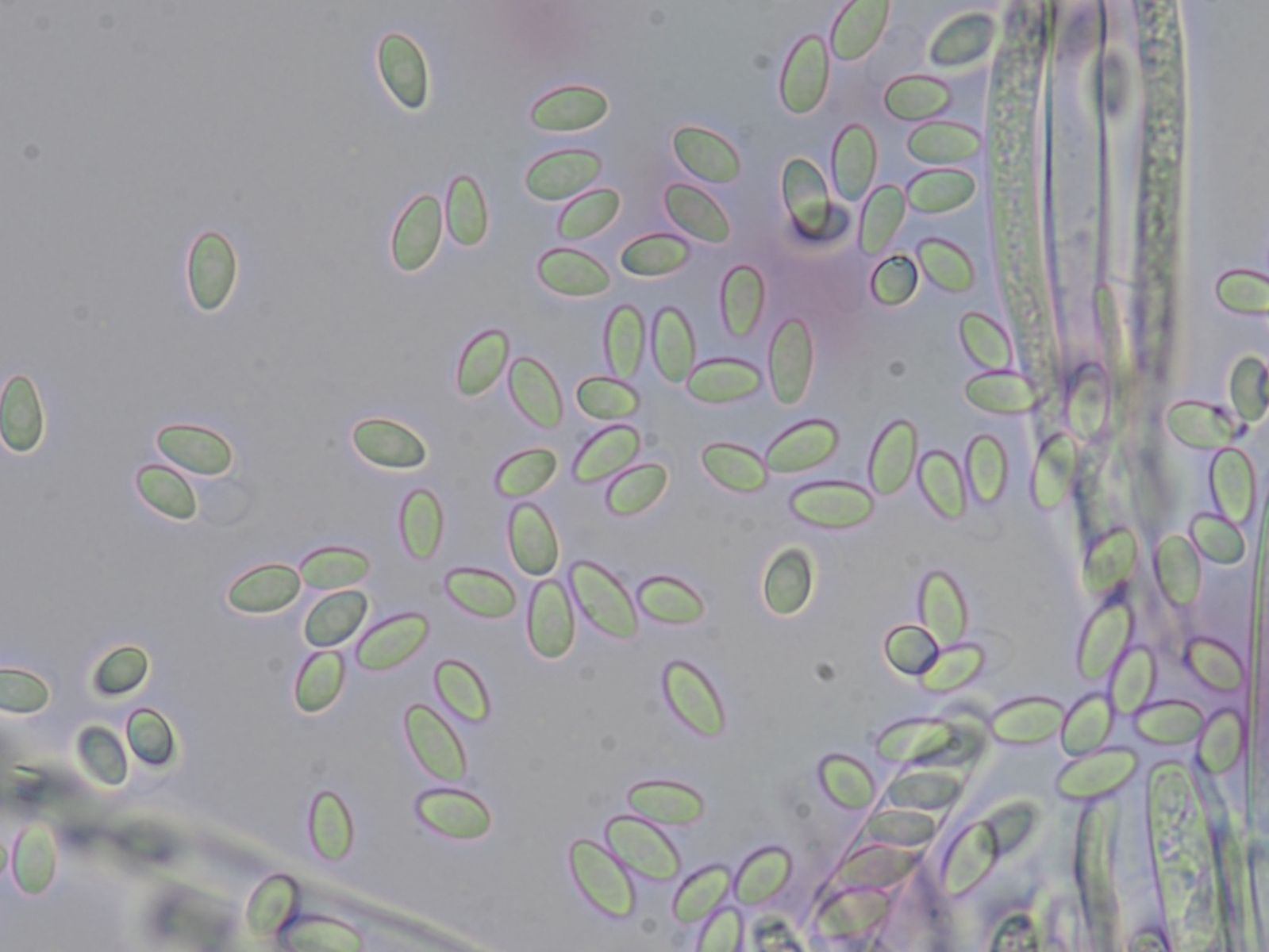 Sporen einkernig, (6.9) 7 - 8.2 (8.6) × (3.4) 3.8 - 4.3 (4.5) µm Q = (1.7) 1.8 - 2 ; N = 24