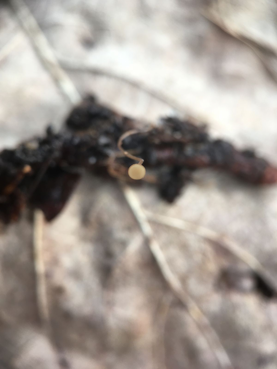 Hallo zusammen, als ich das Helicosporium aufhob fand ich daneben noch ein sehr graziles Stielbecherchen im Eichenlaubdetritus. Der Hutdurchmesser betrug 1,2mm, der "Stiel" war mit 22mm in Relation extrem lang. An seinem Ende fand ich ein Sklerotium. Oder zumindest meine ich das, mitterweile kommen mir Zweifel und ich ärgere mich dass ich es nicht durchgeschnitten und mikroskopiert habe. Vielleicht war es ja auch irgendein Same. Jedenfalls hatte dieses runde schwarze Gebilde einen Durchmesser von 1,5mm. Von den mir bekannten Skerotienbechern passt keiner. Ciborinia candolleana hatte ich nach einer Recherche "in Sonneberg" noch in Betracht gezogen, der hat aber spitzere Sporen, die hier sind eher ovoid. Von den Sporen passt nach meinen Aufzeichnungen a.e. Ciboria conformata, der um diese Jahreszeit allerdings auf zersetzten Erlenblattadern wächst. Auch in Richtung Samen habe ich gesucht, da gibt es zB Ciboria ploettneriana, die an Veronica Samen wächst, aber ebenfalls von den Sporen her nicht passt.