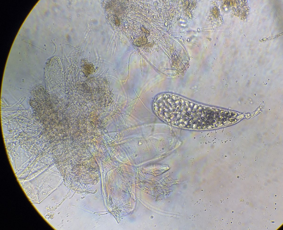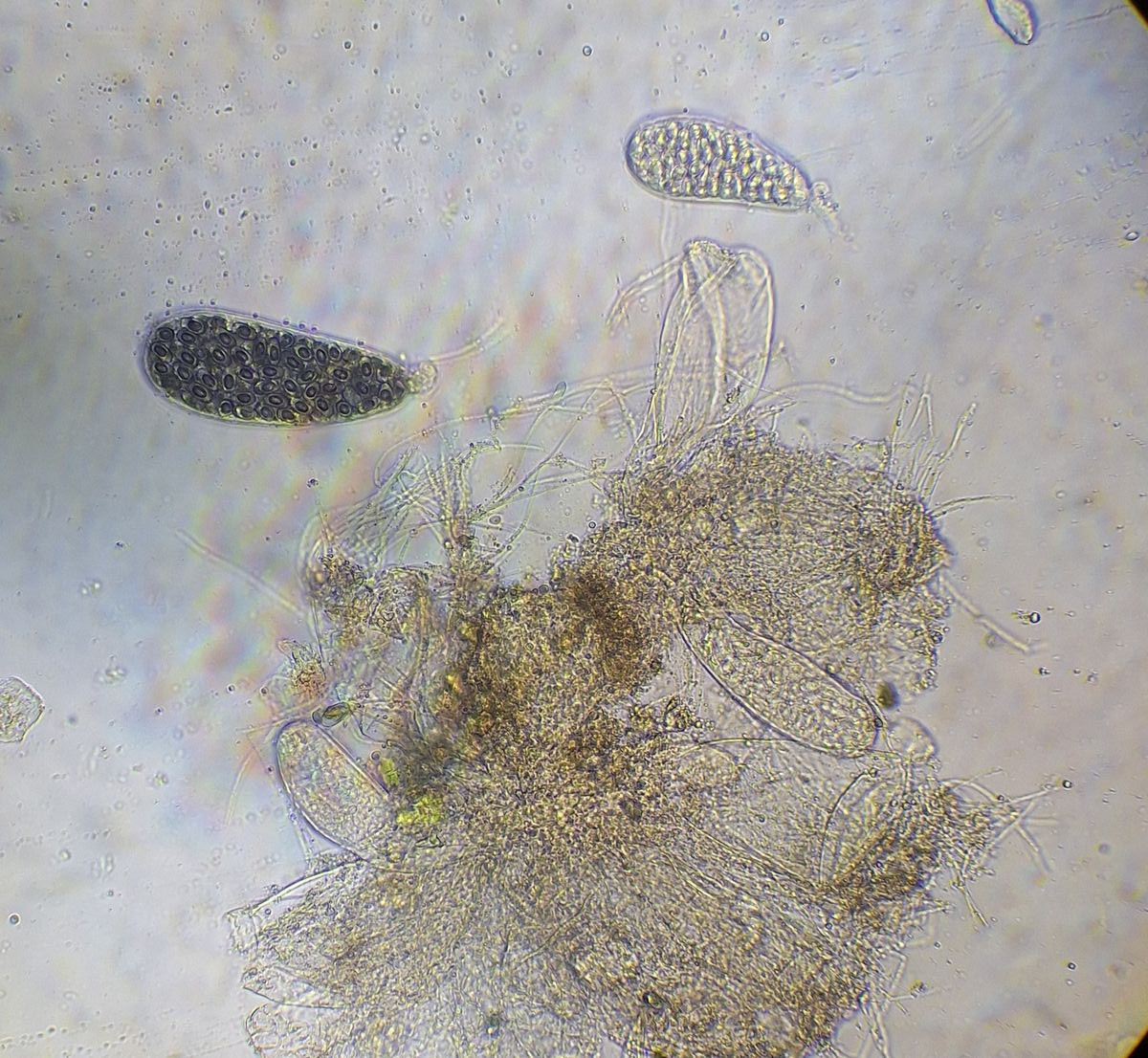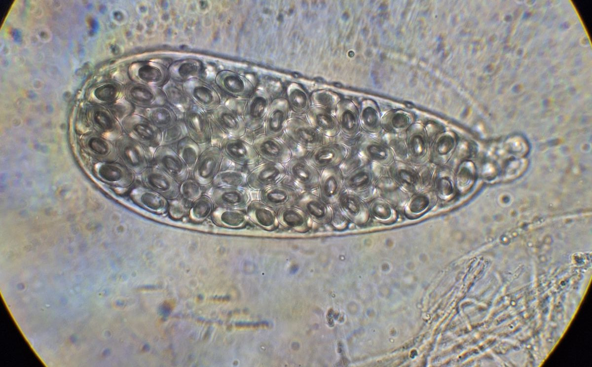 Vom letzten Bild der Asci nicht verwirren lassen. Die Sporen darin sind unreif. Reife Sporen füllen den Ascus fast vollständig, davon gelang aber kein guten Foto.