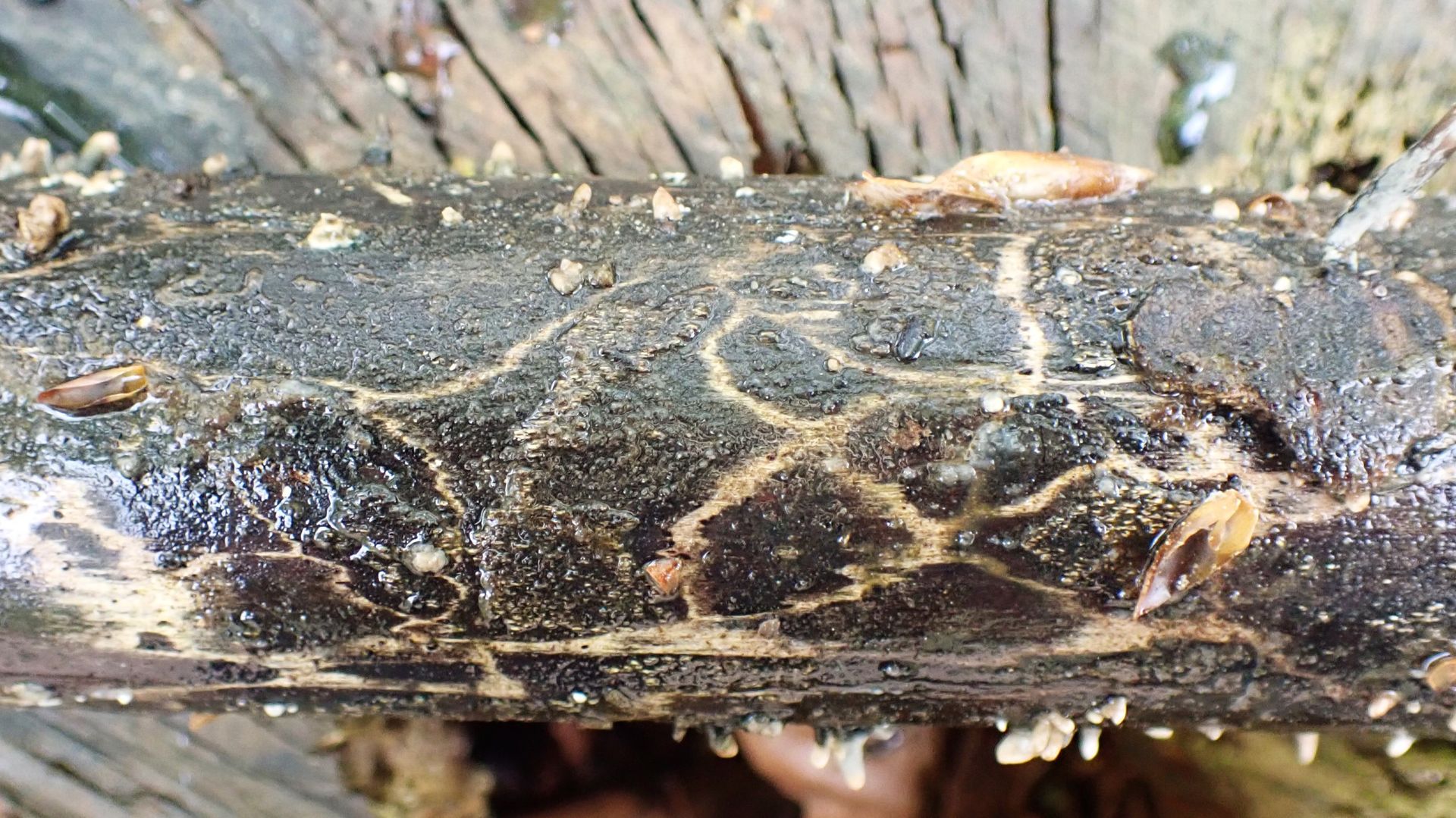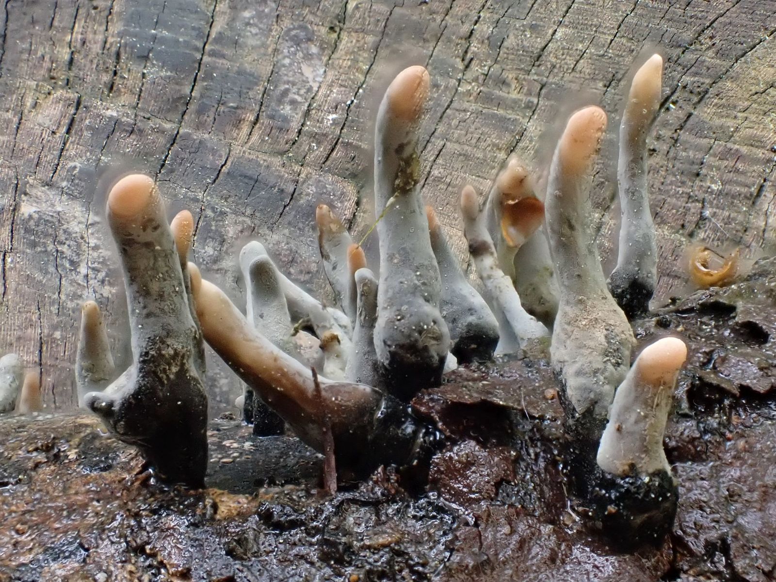 gestern habe ich in einem Rinnsal neben einem Waldweg in Bad Iburg einen Ast mit Holzkeulen gefunden. Den Ast habe ich rausgefischt und zum besseren fotografieren auf einen Baumstumpf gelegt. Die häufigsten Bäume sind Buche und Bergahorn.