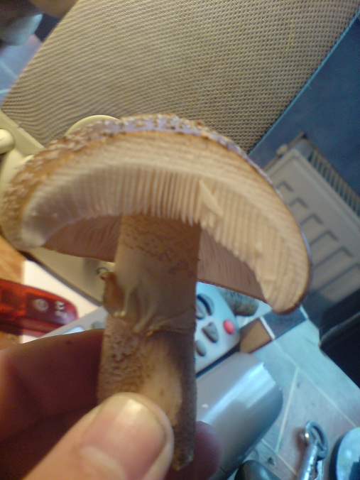Mich wundert nur das er nicht rötet. Noch eine kleine Zusatzinfo: Die Haut die sich vom Stiel löst ist gerillt innen.