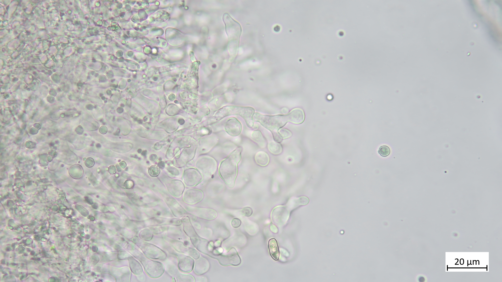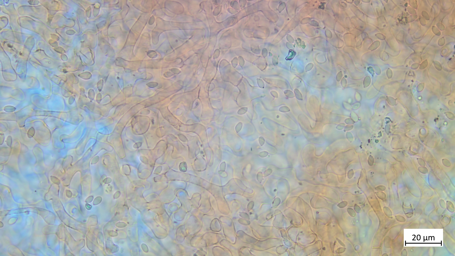 Mikrodaten: Sporen kleiner als bei Rhodocollybia butyracea, glatt, passen gut zu Gymnopus vernus: