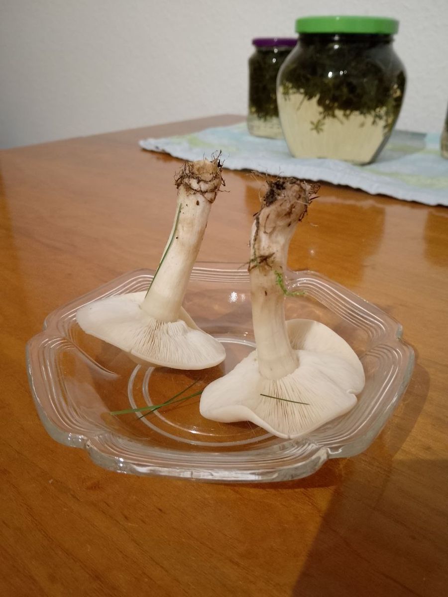 Meine Frau hat mir diesen Pilz heimgebracht. Leider weiß ich nichts über den Fundort, bei uns im Schwarzwald wachsen aber eher Nadelbäume. Hutoberseite weiß, teilweise rosa. Der Hutrand ist nicht rund, man sieht man teils Einbuchtungen oder Falten.