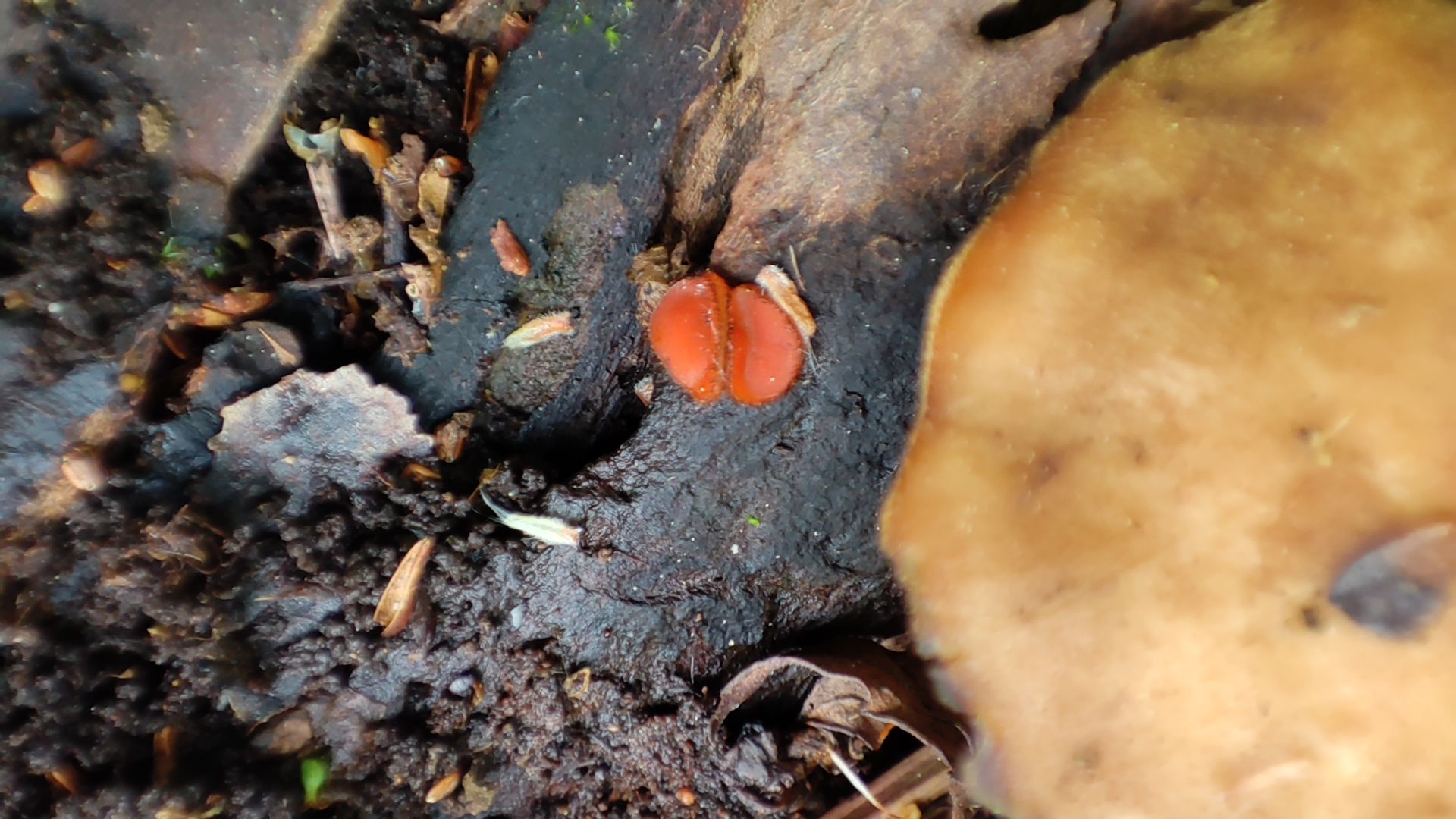 Bei den orangen Bechern glaube ich Wimpern zu erkennen, das legt die Vermutung von Scutellinia nahe.