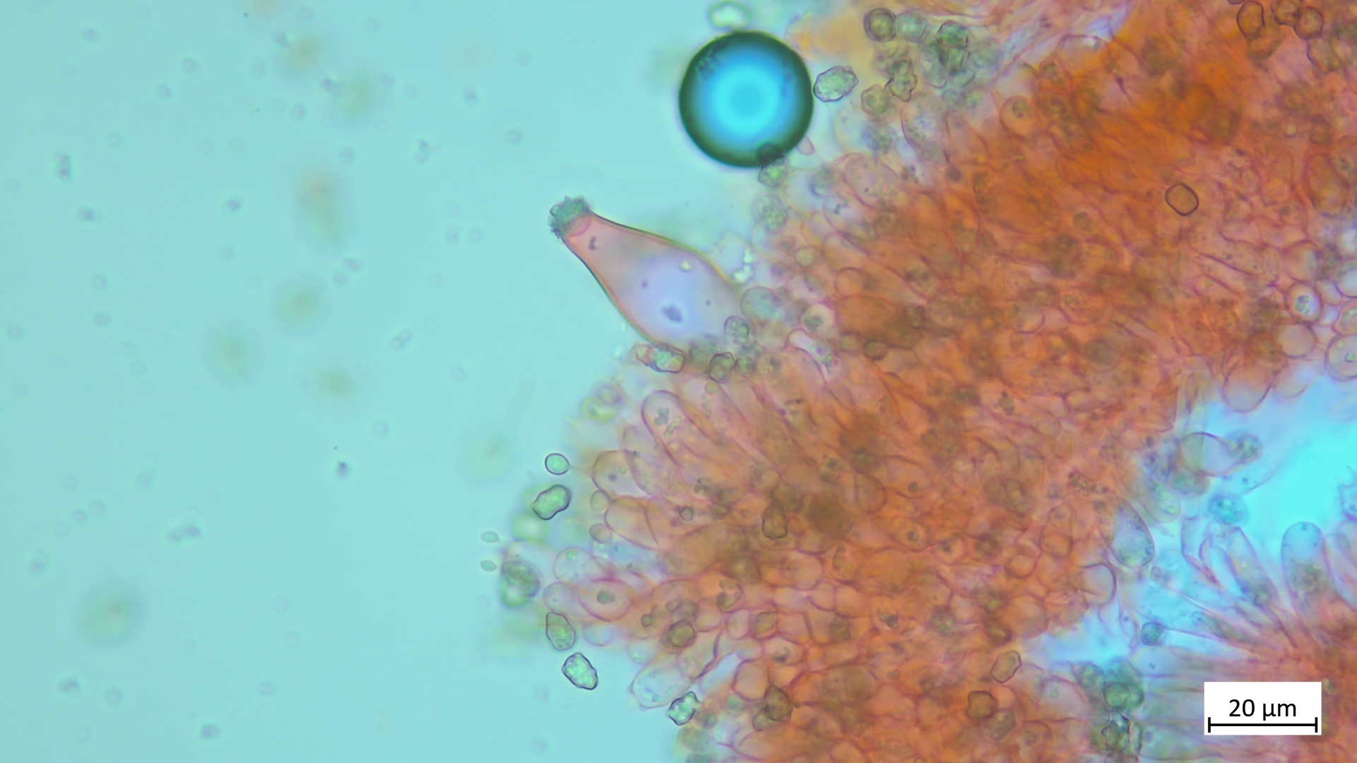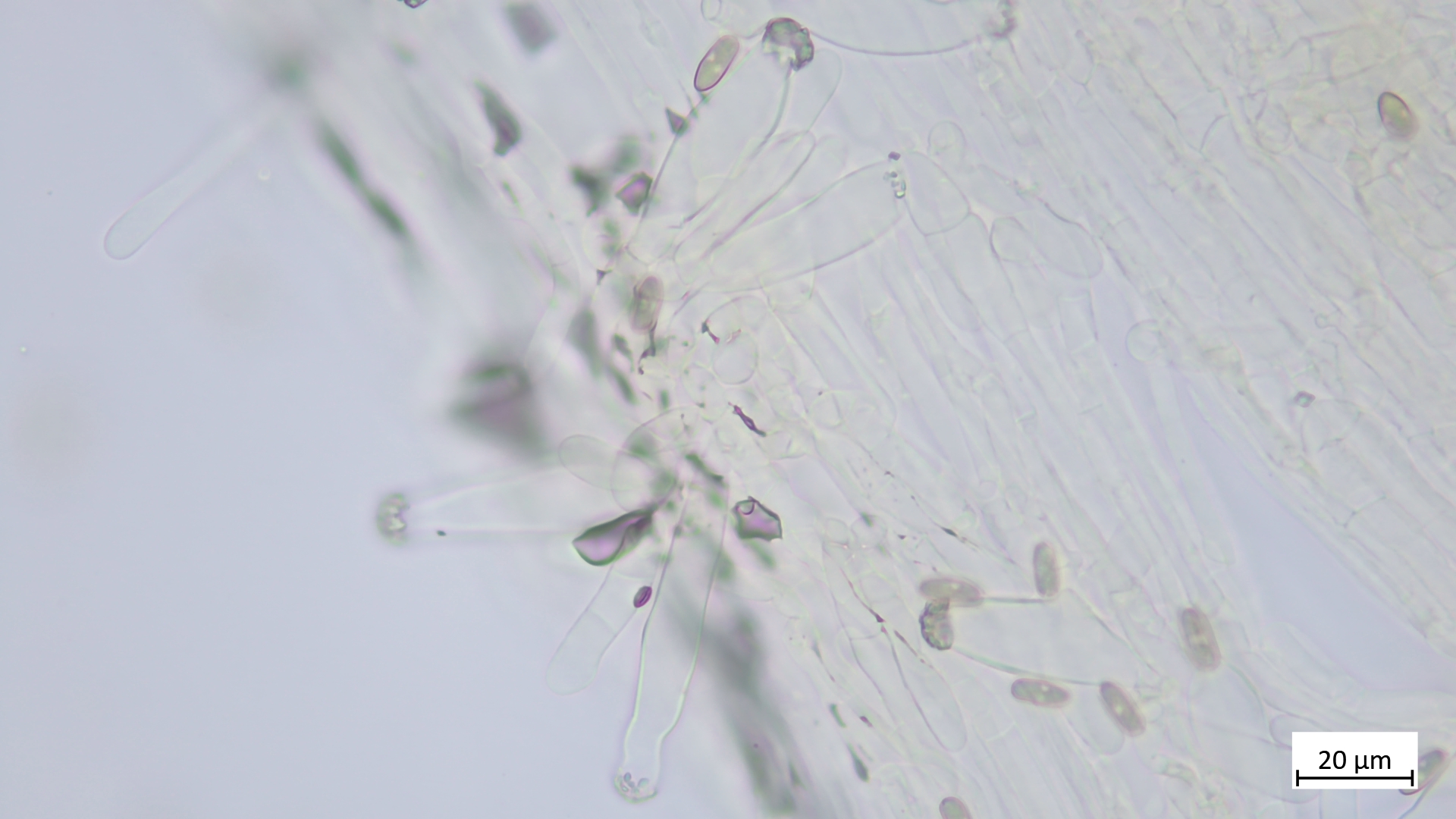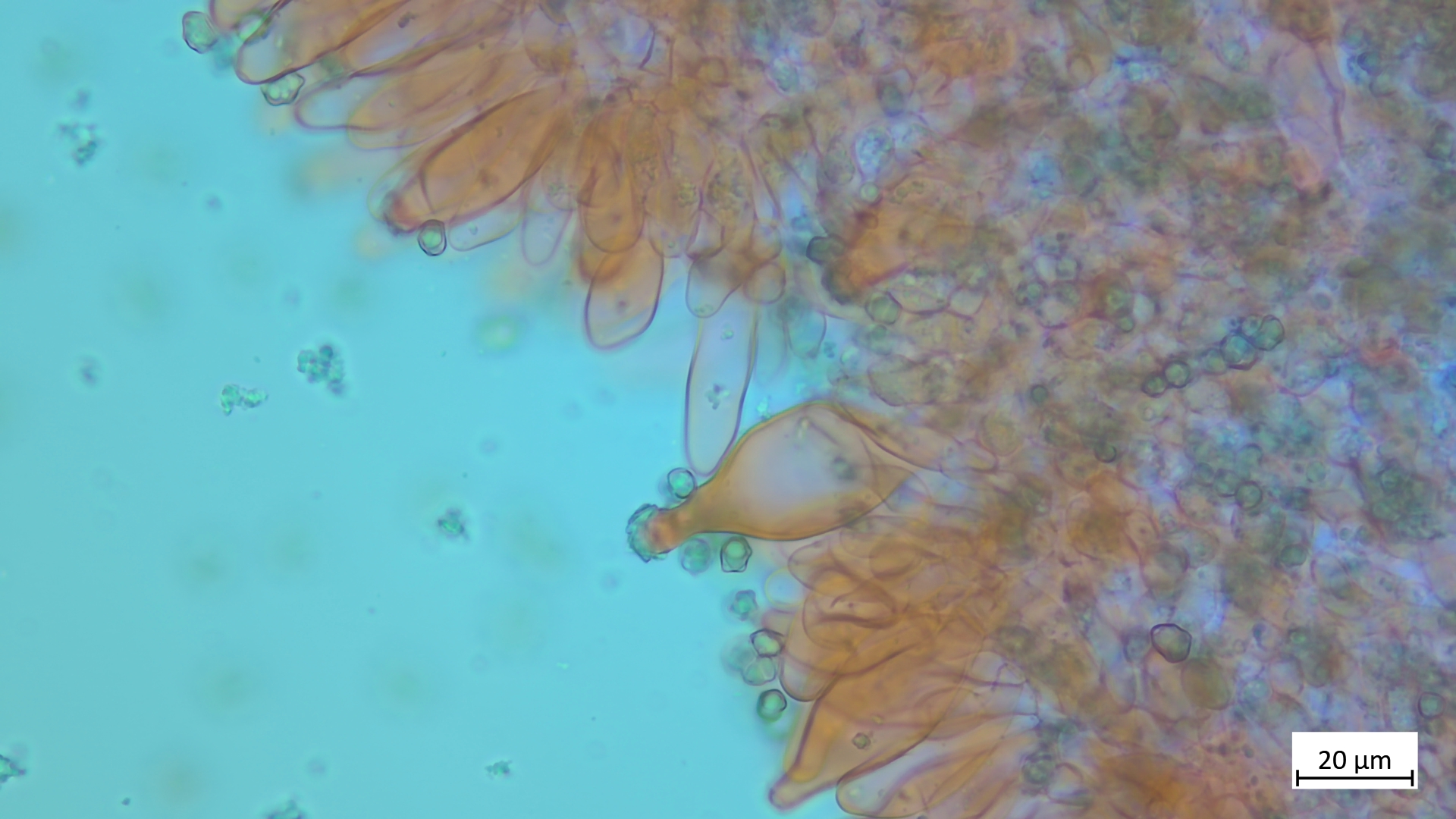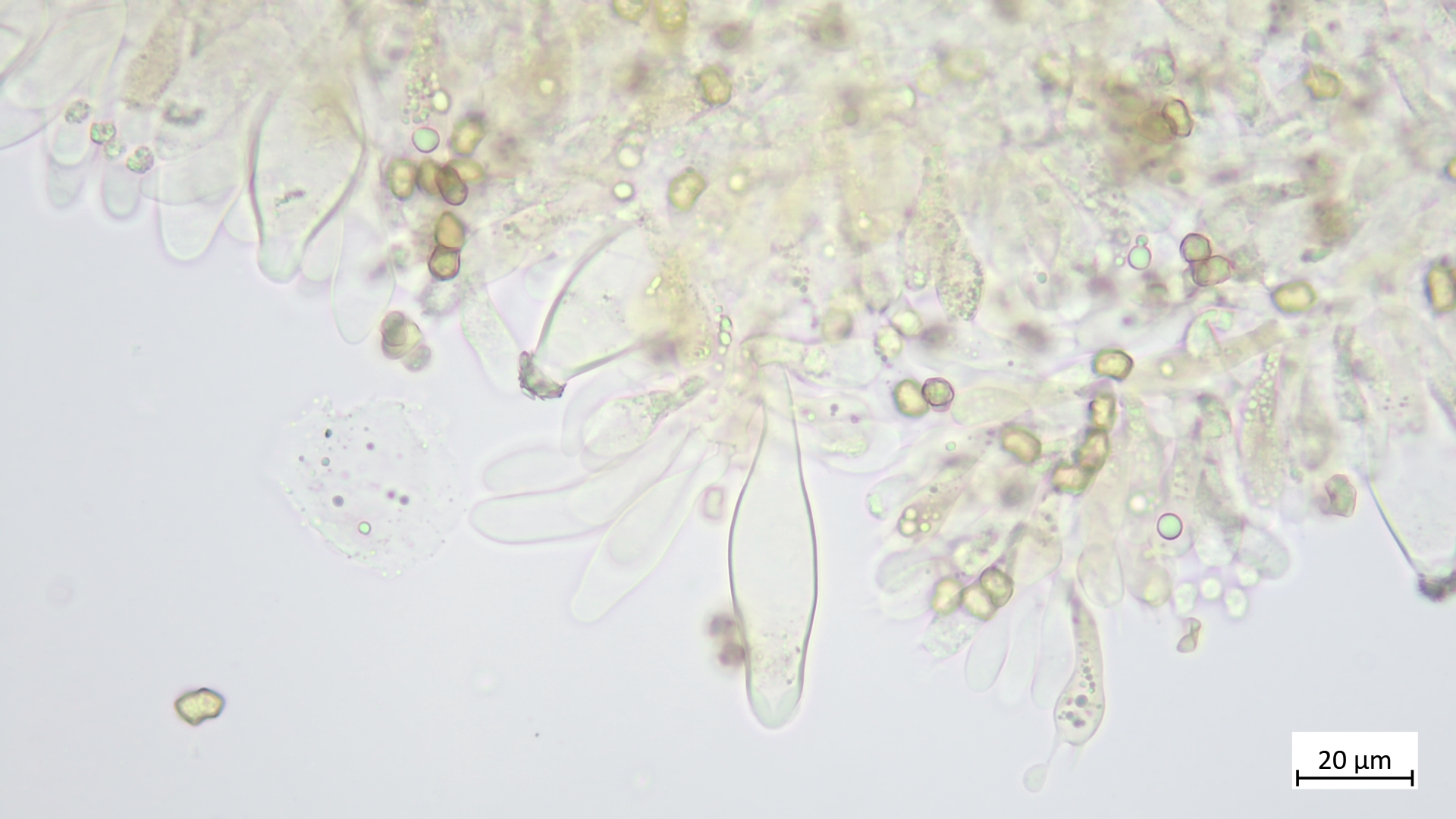 Kaulos nicht den Cheilozystiden ähnelnd sondern in Sonderform, nur oberer Stielteil: