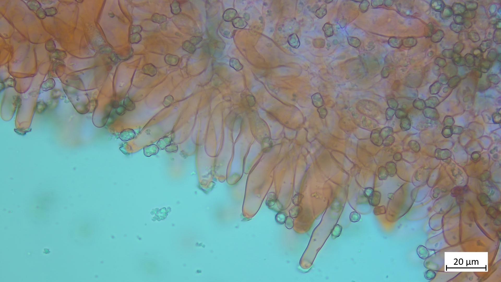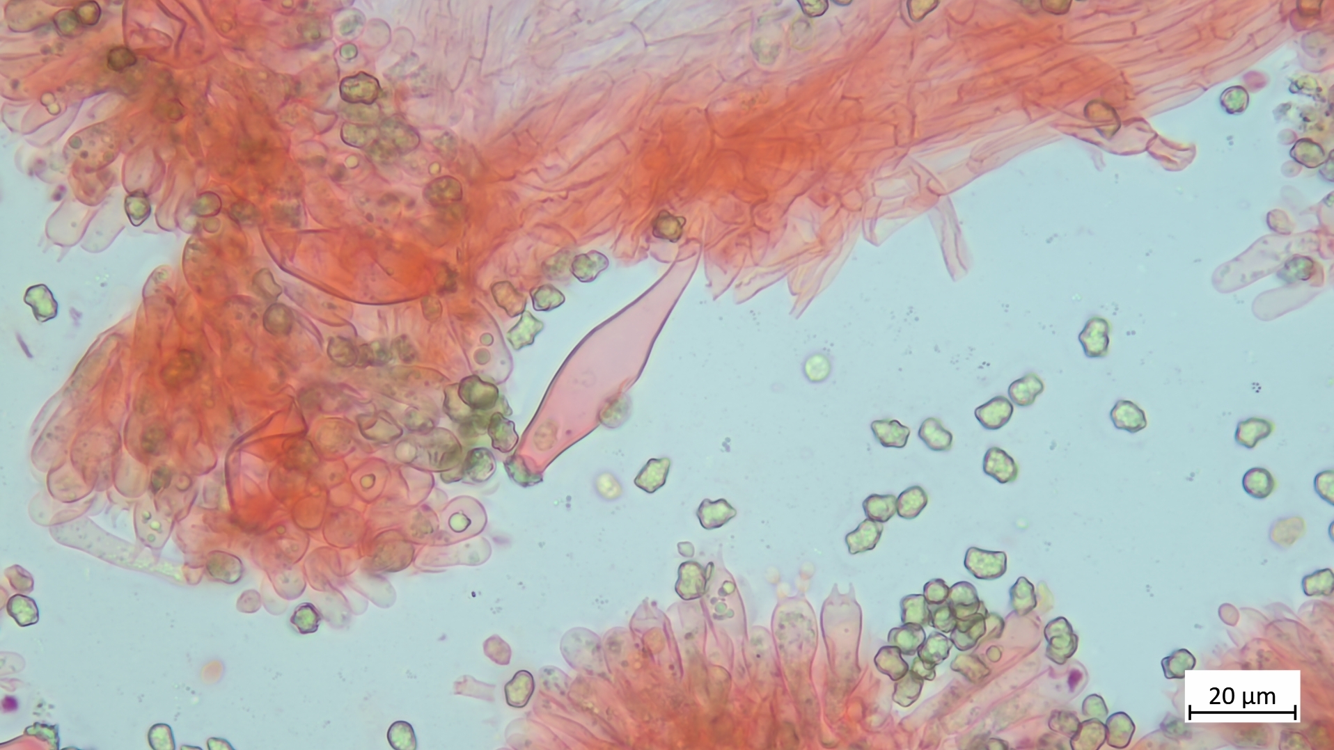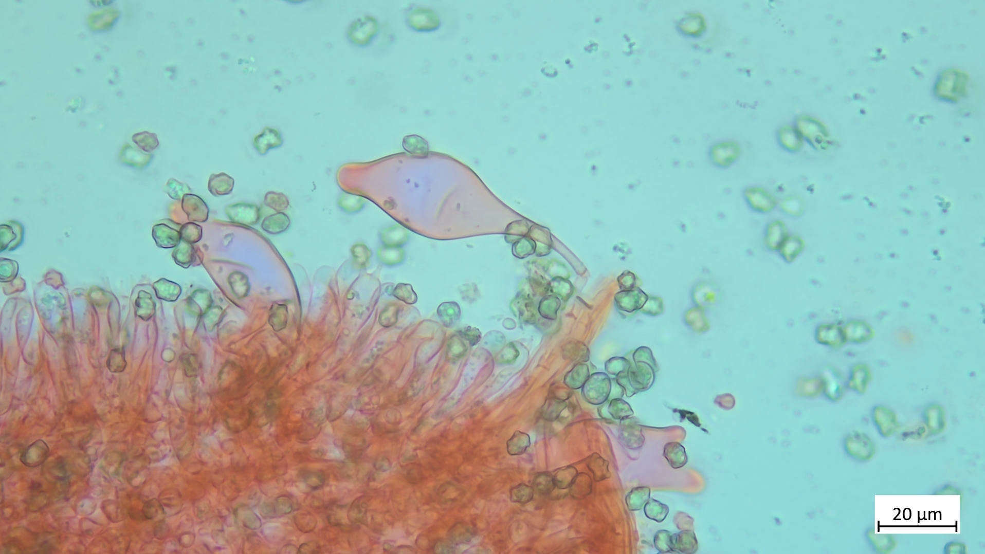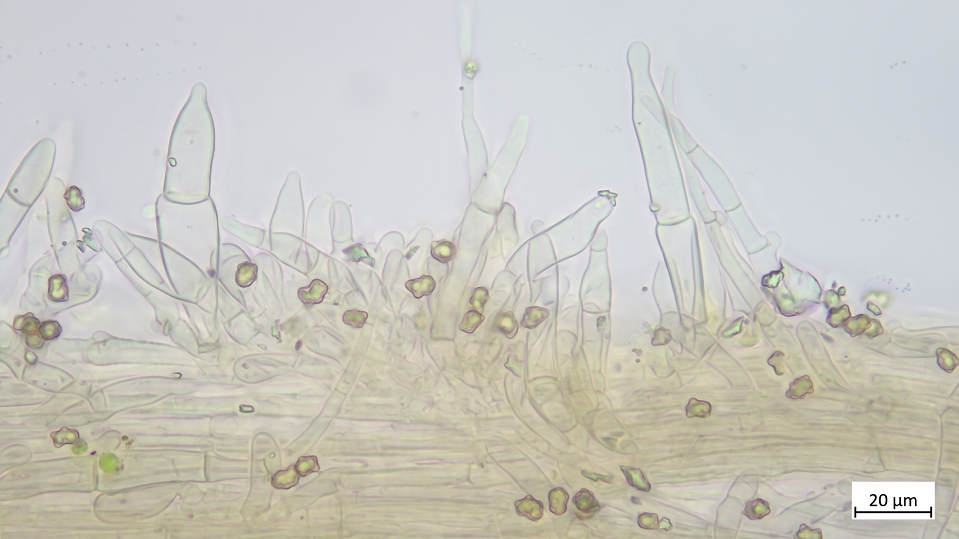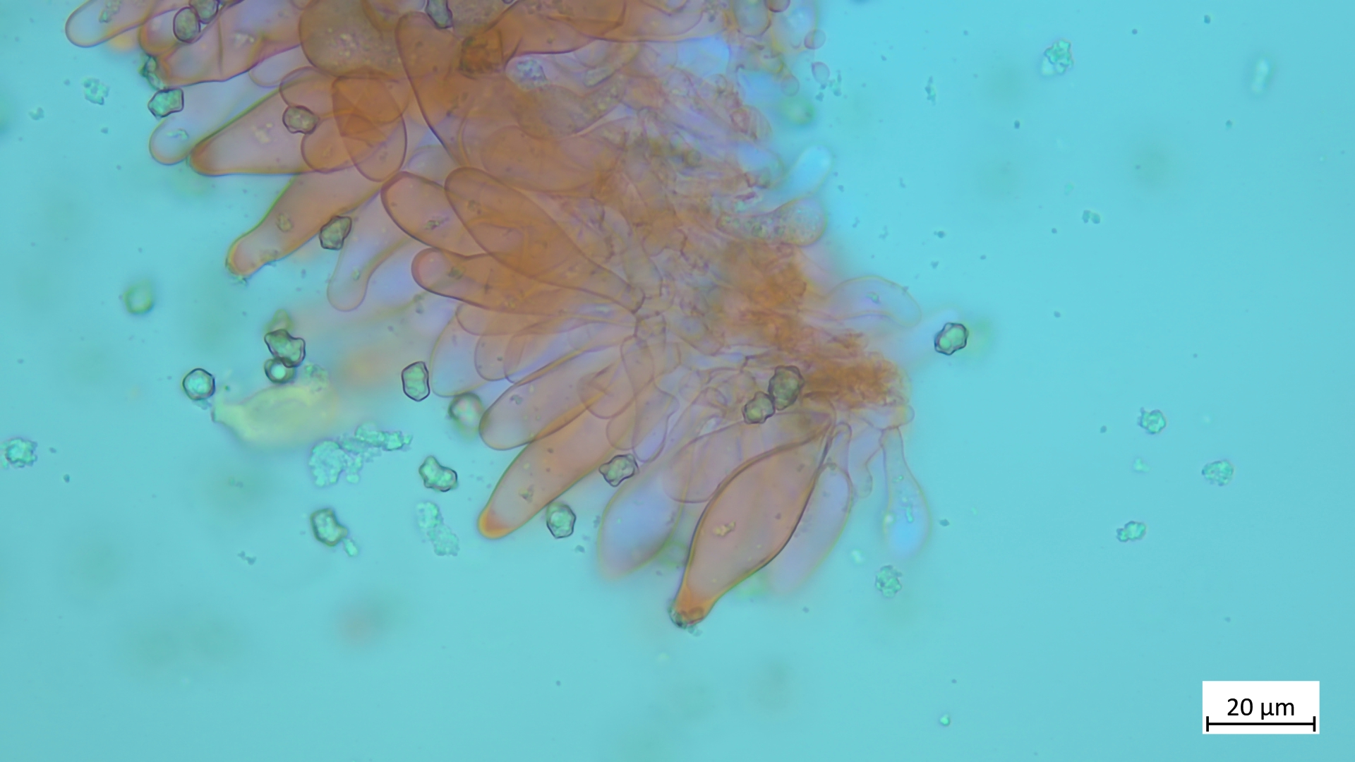 Kaulos nicht den Cheilozystiden ähnelnd sondern in Sonderform, nur oberer Stielteil: