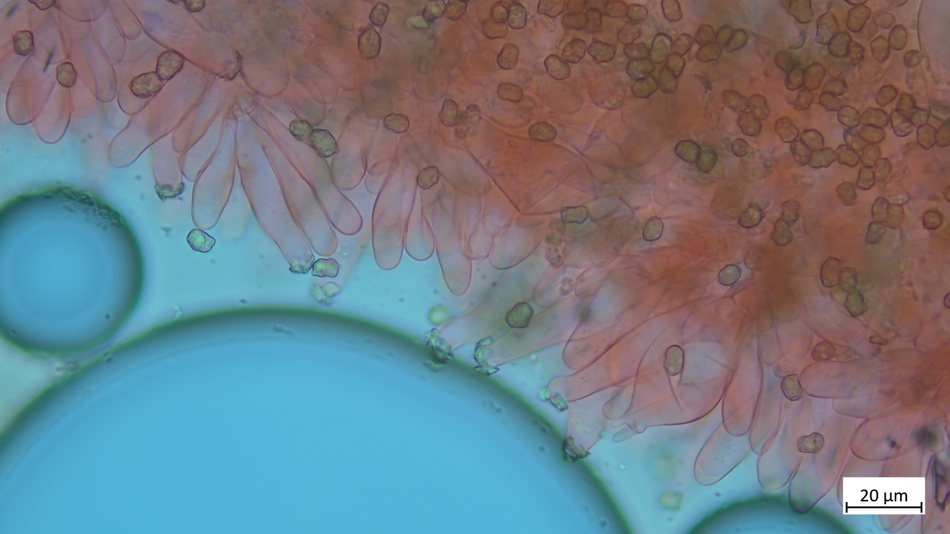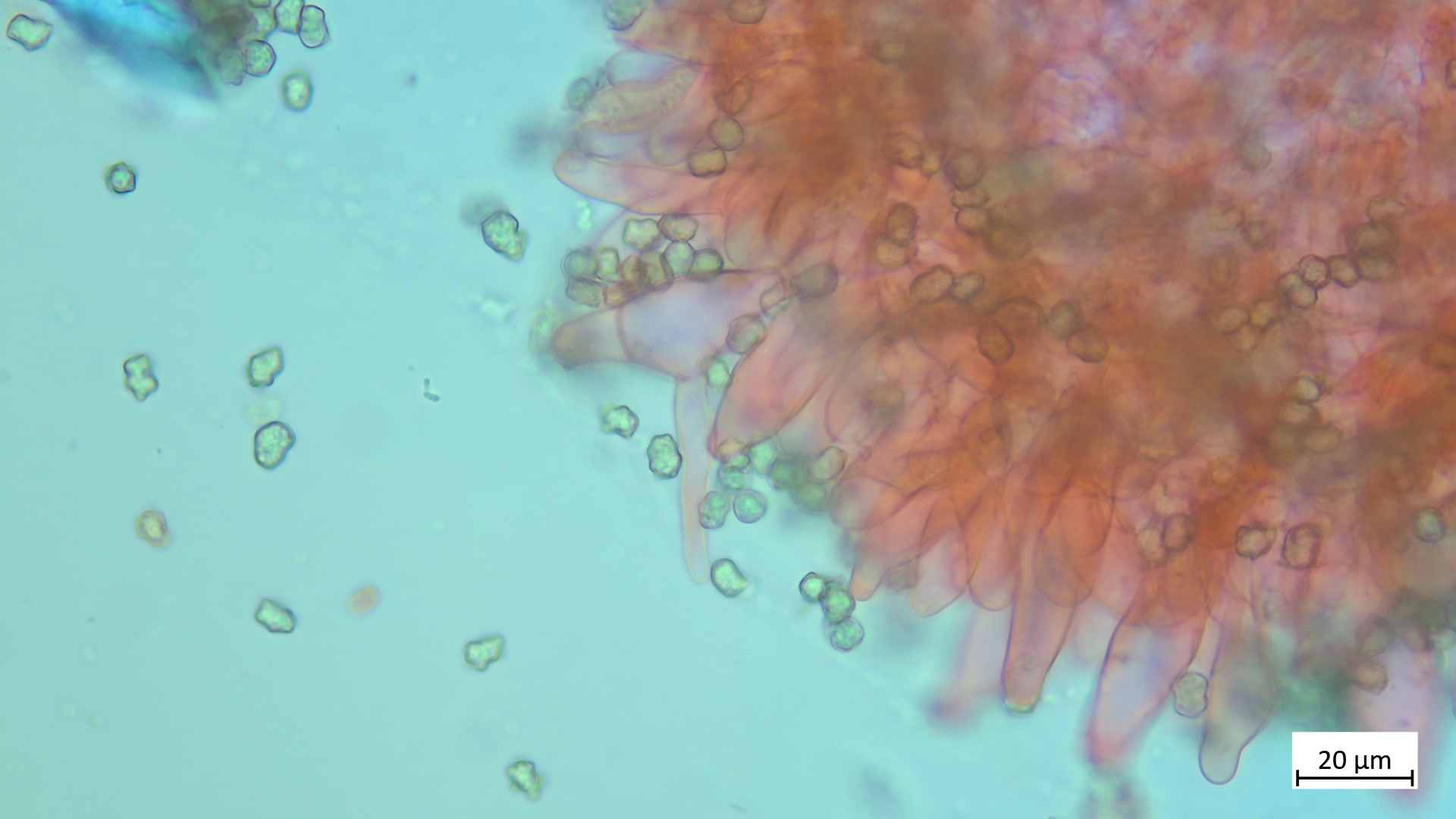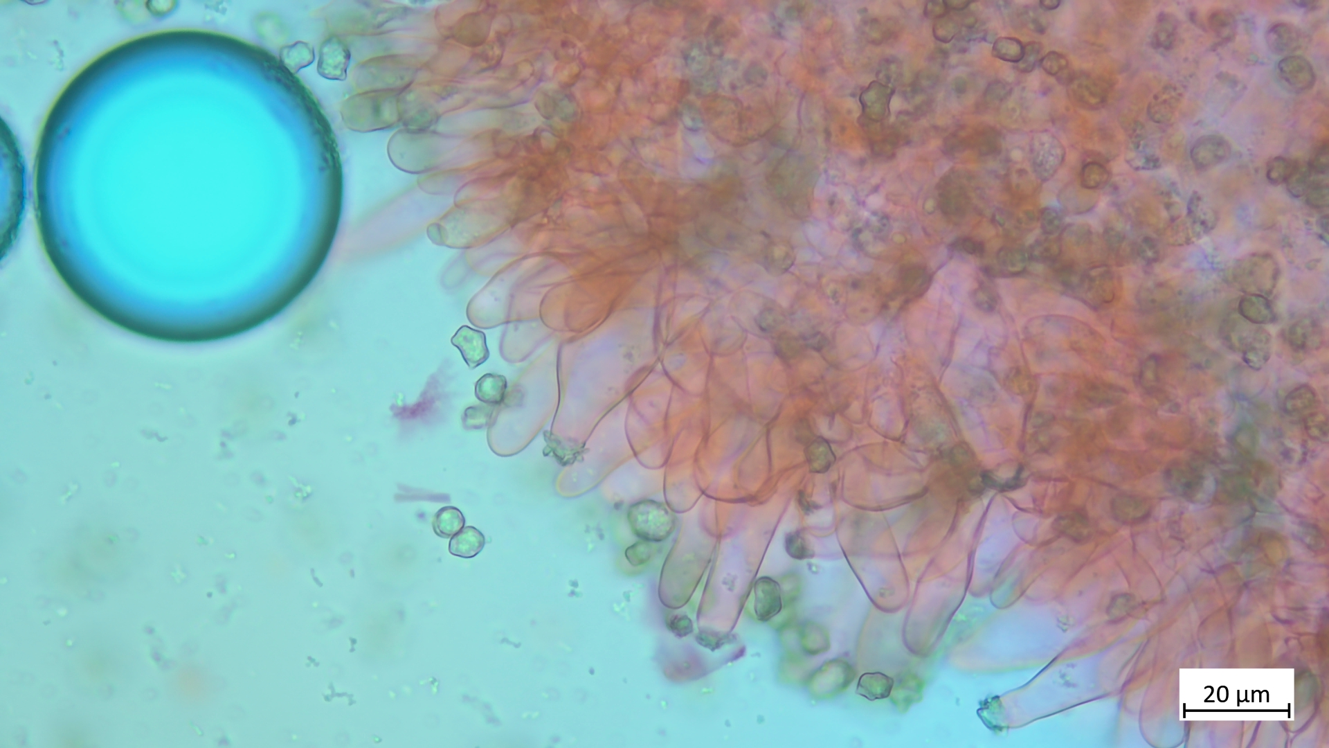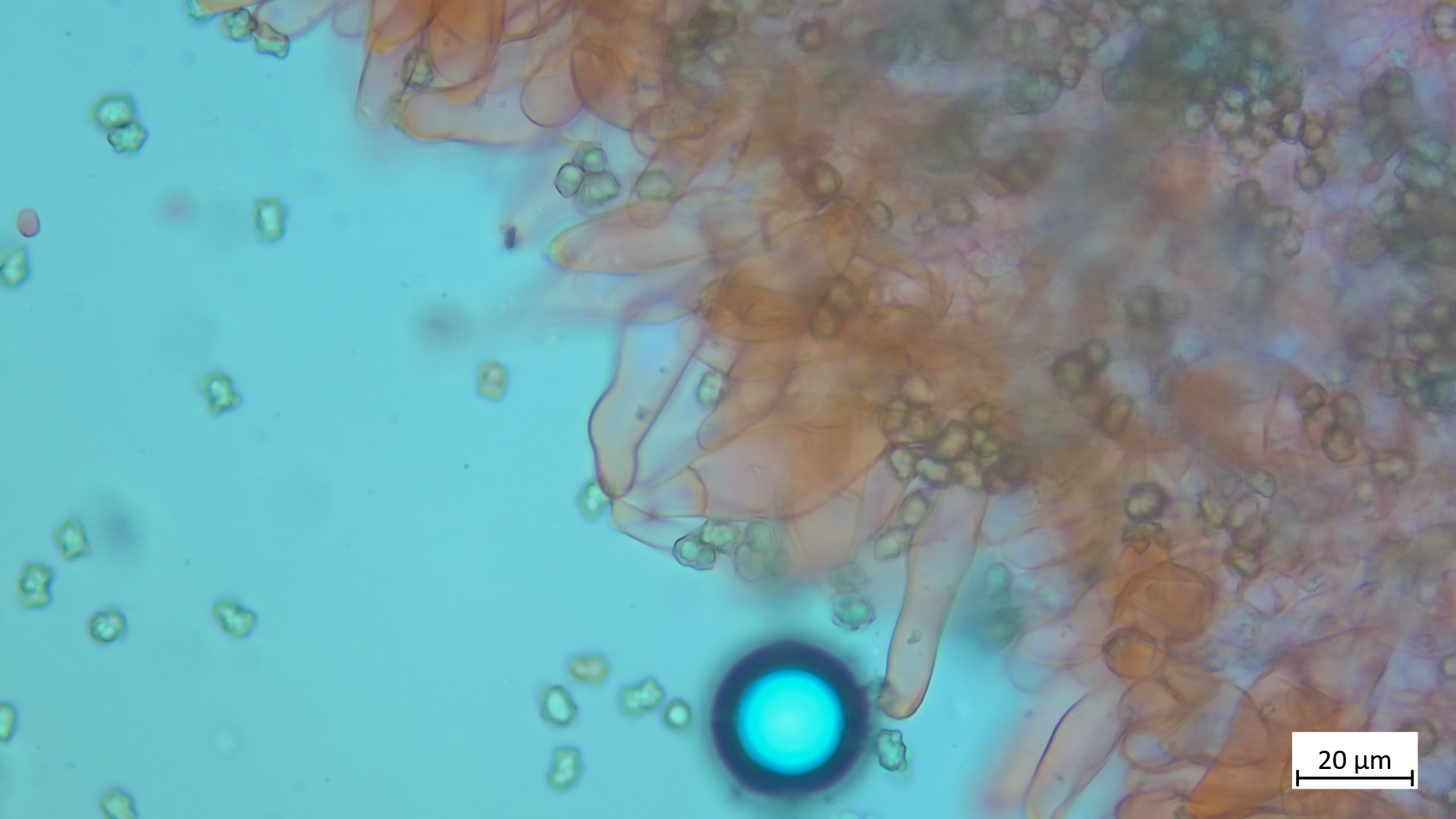 Kaulos nicht den Cheilozystiden ähnelnd sondern in Sonderform, nur oberer Stielteil: