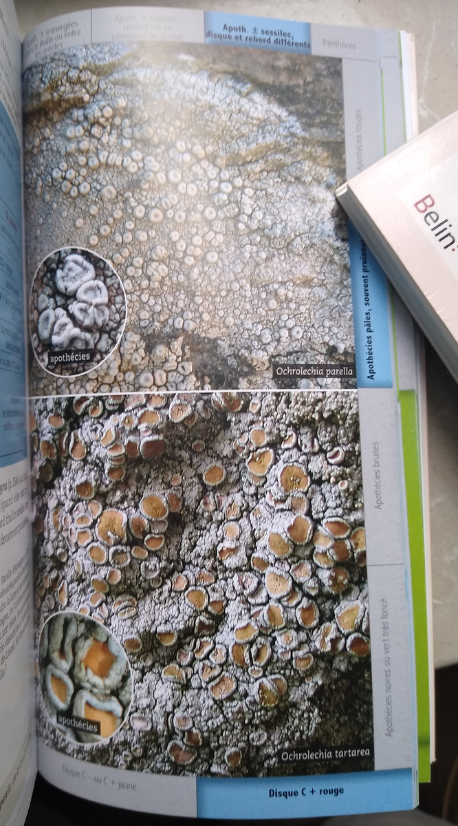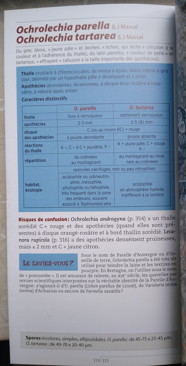 Doppelseite zu O. parella und O. tartarea aus dem Führer "Lichen des roches"