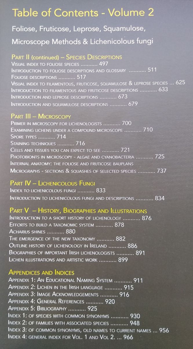 Teil 4 gehört den lichenicolen Pilzen, Teil 5 der Geschichte der Lichenologie, zu hinterst natürlich Anhang und Index.