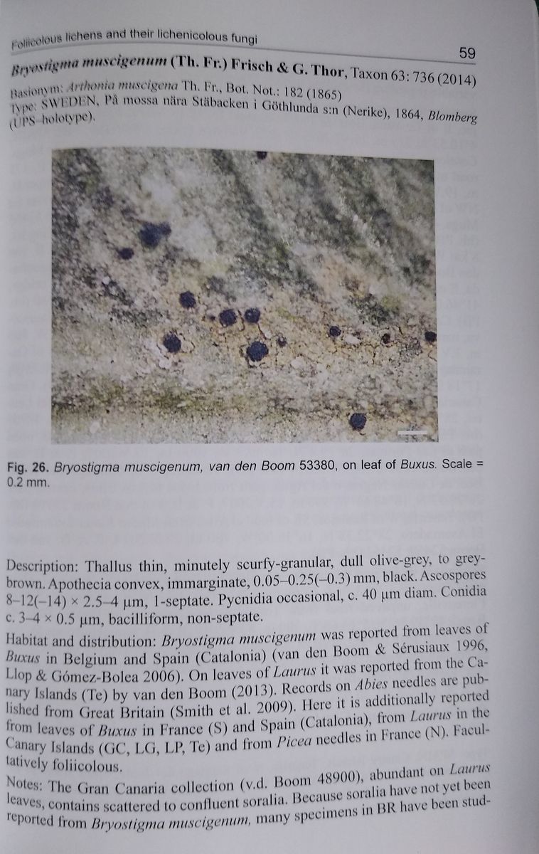 Pieter P.G. van den Booms Büchlein "Foliicolous lichens and their lichenicolous fungi in Macaronesia and altantic Europe" ist ausschließlich diesen Flechten gewidmet.