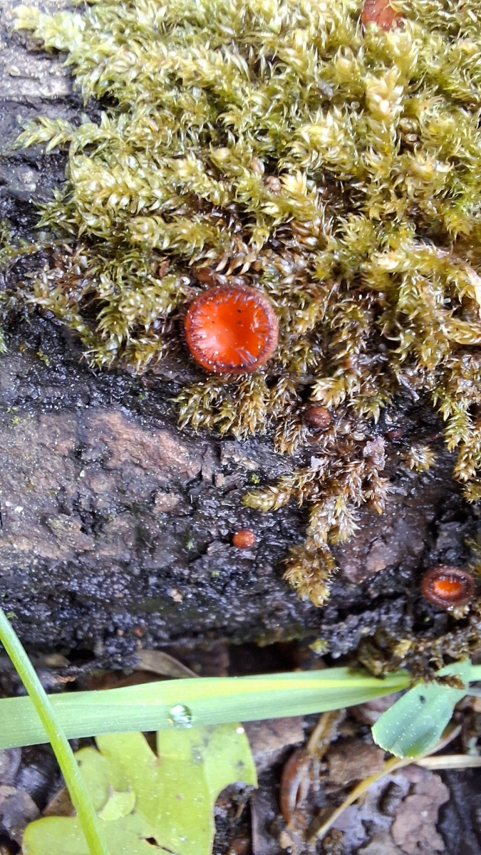 Kann das hinkommen? (Fund war am 27.4.24) Erstes Bild für den Größenvergleich. Pilze sind links unten am Holz, rechts ist ein durchschnittlich großer Löwenzahn.