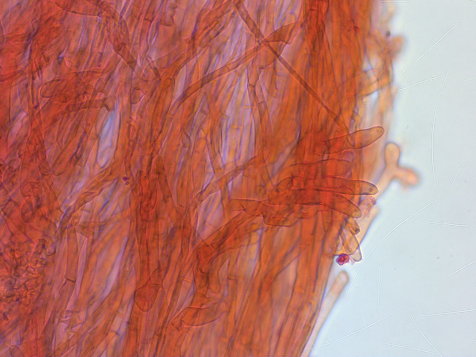 Der Stiel ist ganz fein flaumig, was man hier an diesen zystidenartigen Stielelementen sieht.