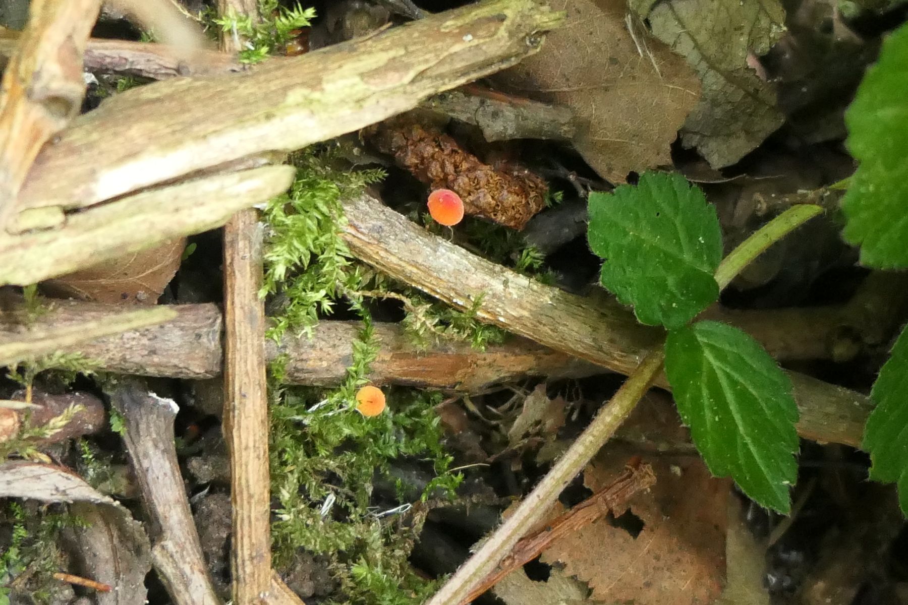 Edit: Es ist wohl eher von einer Mycena auszugehen. Vielleicht Mycena acicula (Danke)