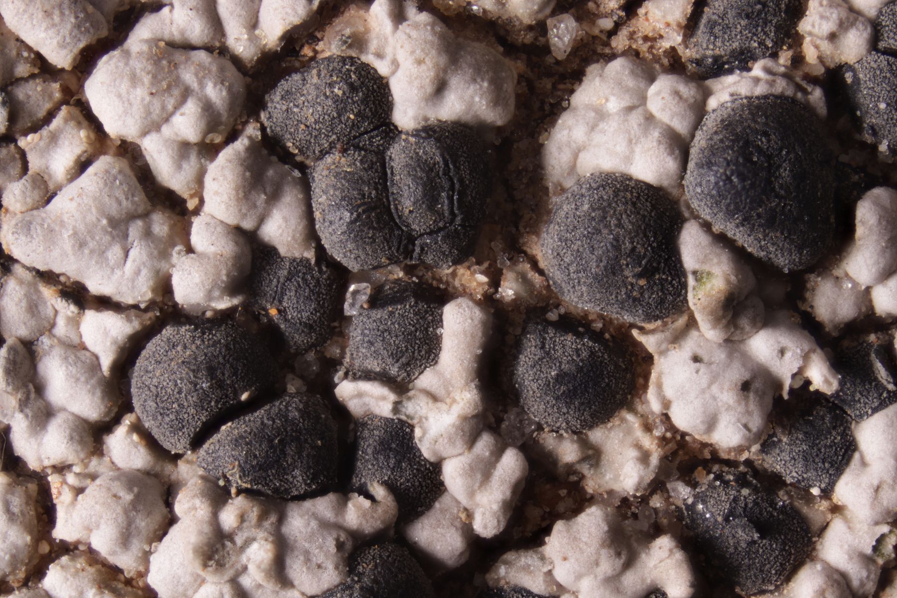 2. Das müßte Rhizocarpon reductum sein, Sporen messen 25-30 x 11-12 µm