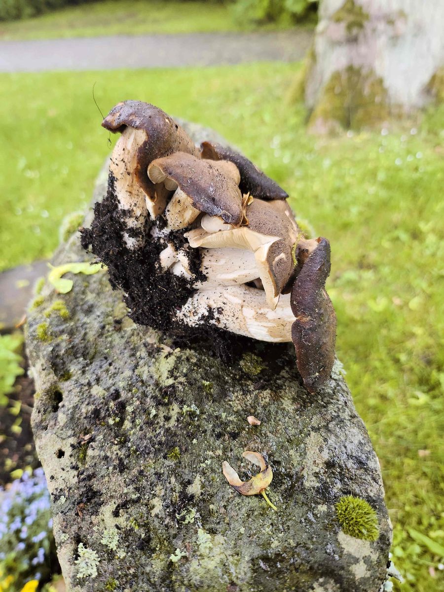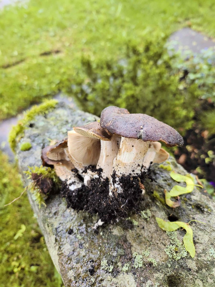Der Friedhof selbst besitzt keine alten Bäume. Ich konnte dort allerdings Champignons finden, leider alle völlig madig. Dazu auf einer frisch mit diversen org. Material aufgeschütteten, ehemaligen Grabstelle, den Büscheliger Rasling, Lyophyllum decastes, finden. Leider waren die FK schon zu alt und man roch es deutlich; schade.Denn das ist einer meiner Lieblingsspeisepilze.
