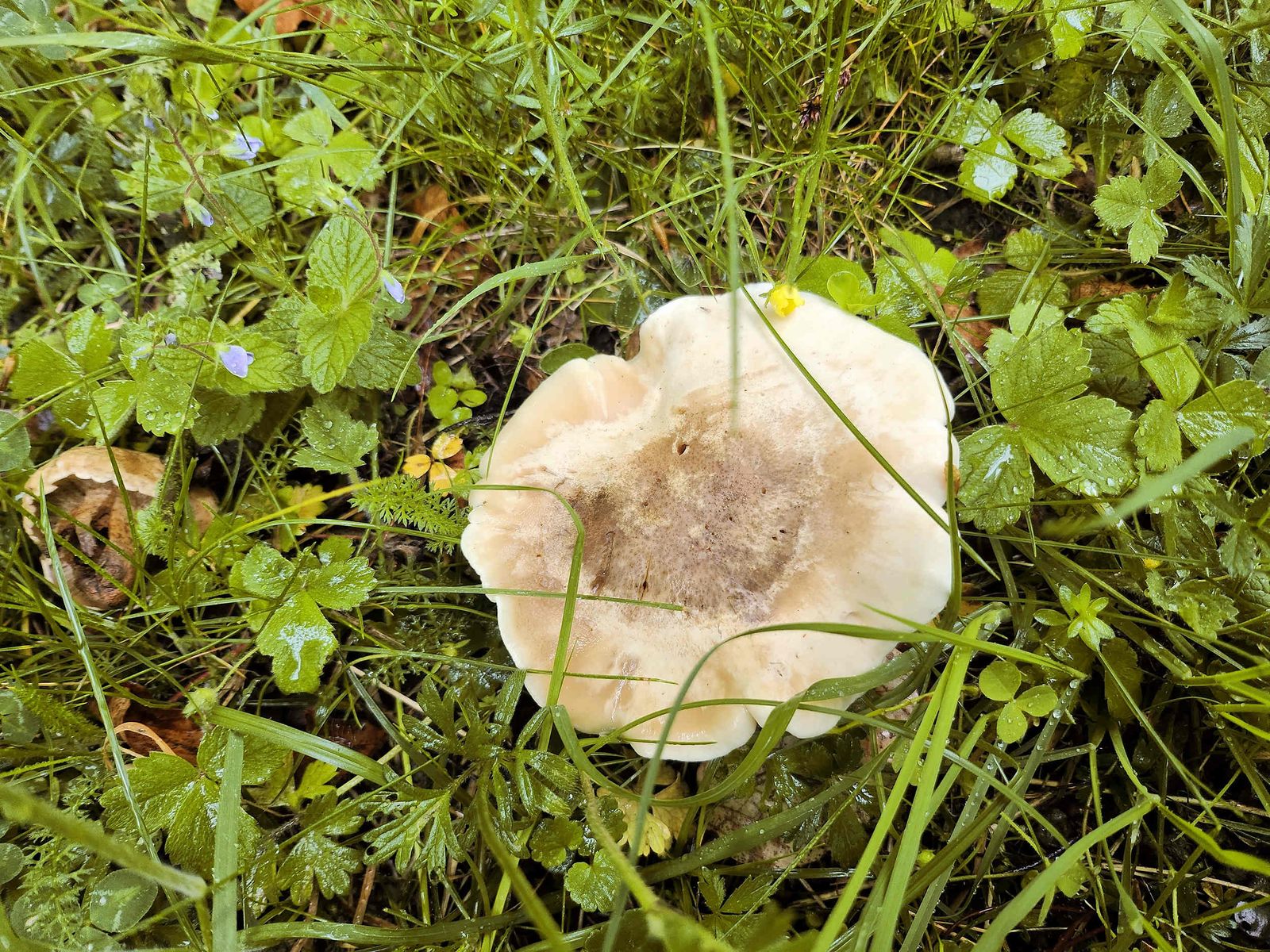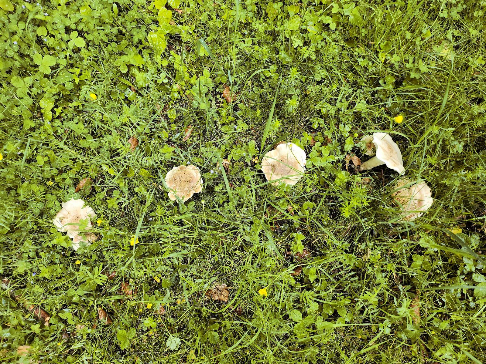 In den Rasenflächen waren Hexenringe sichtbar, es gab hier den Mairitterling, Calocybe gambosa. Manche FK waren noch jung und fast madenfrei.