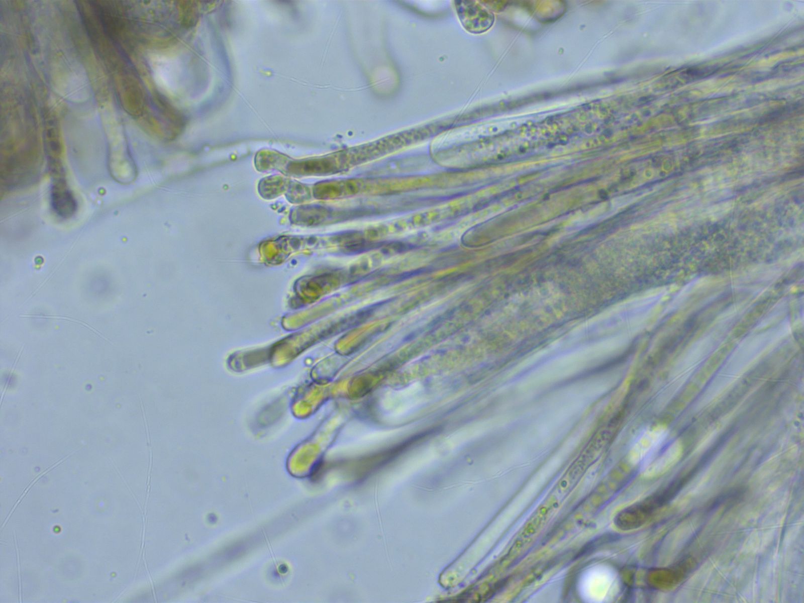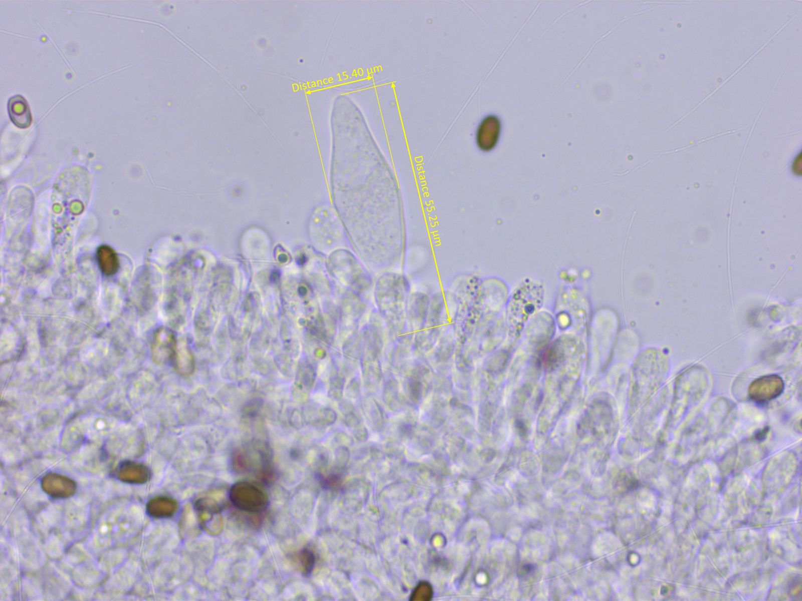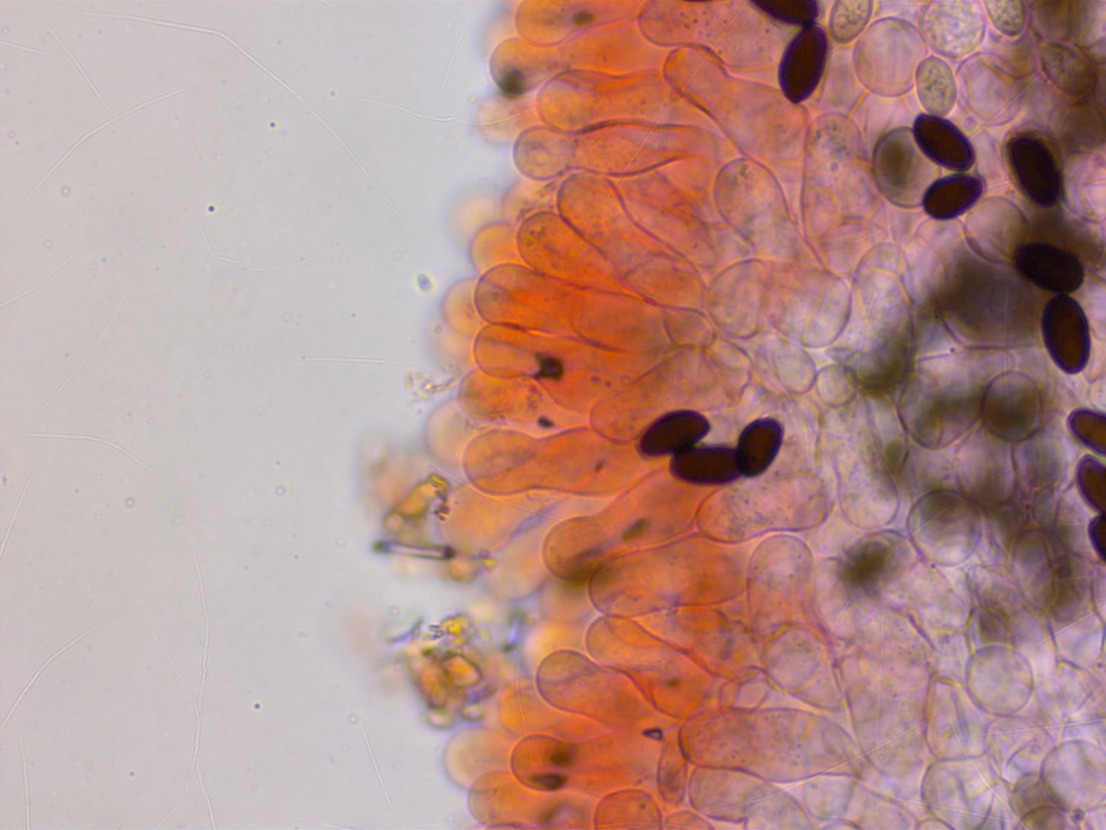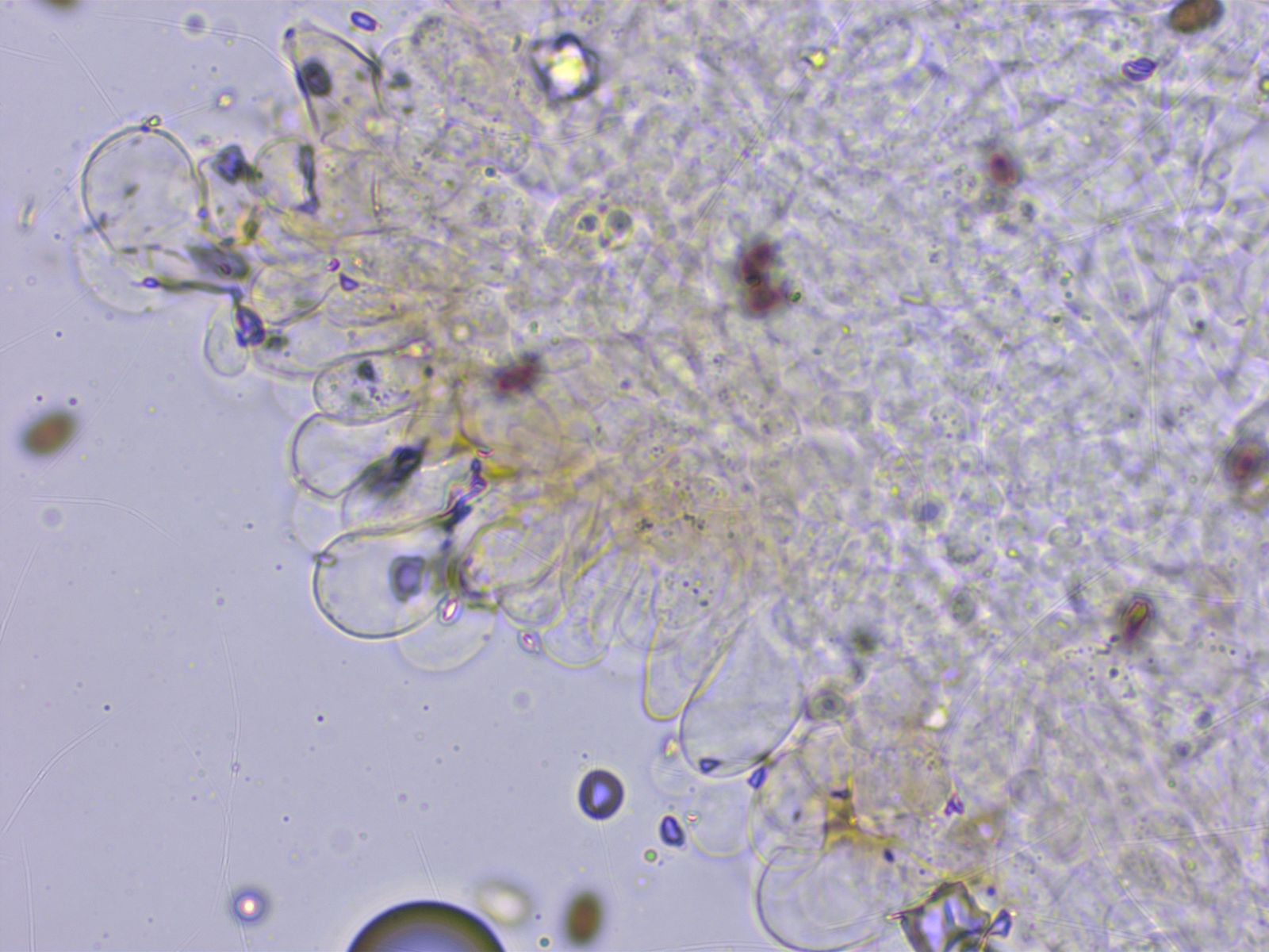 Die Schneide ist dominiert von keuligen Parazystiden, dazwischen nur einzelne echte Cheilozystiden.