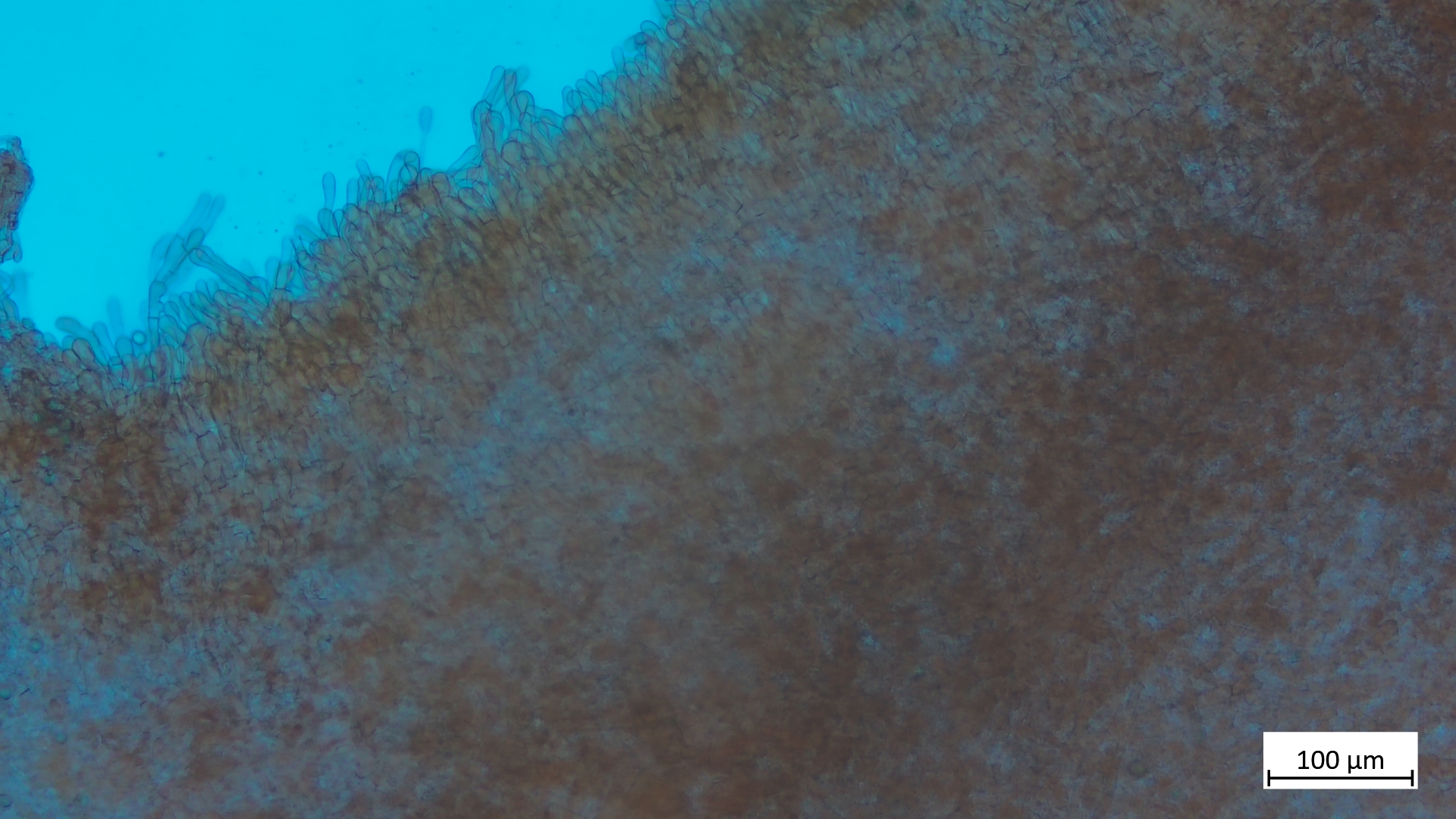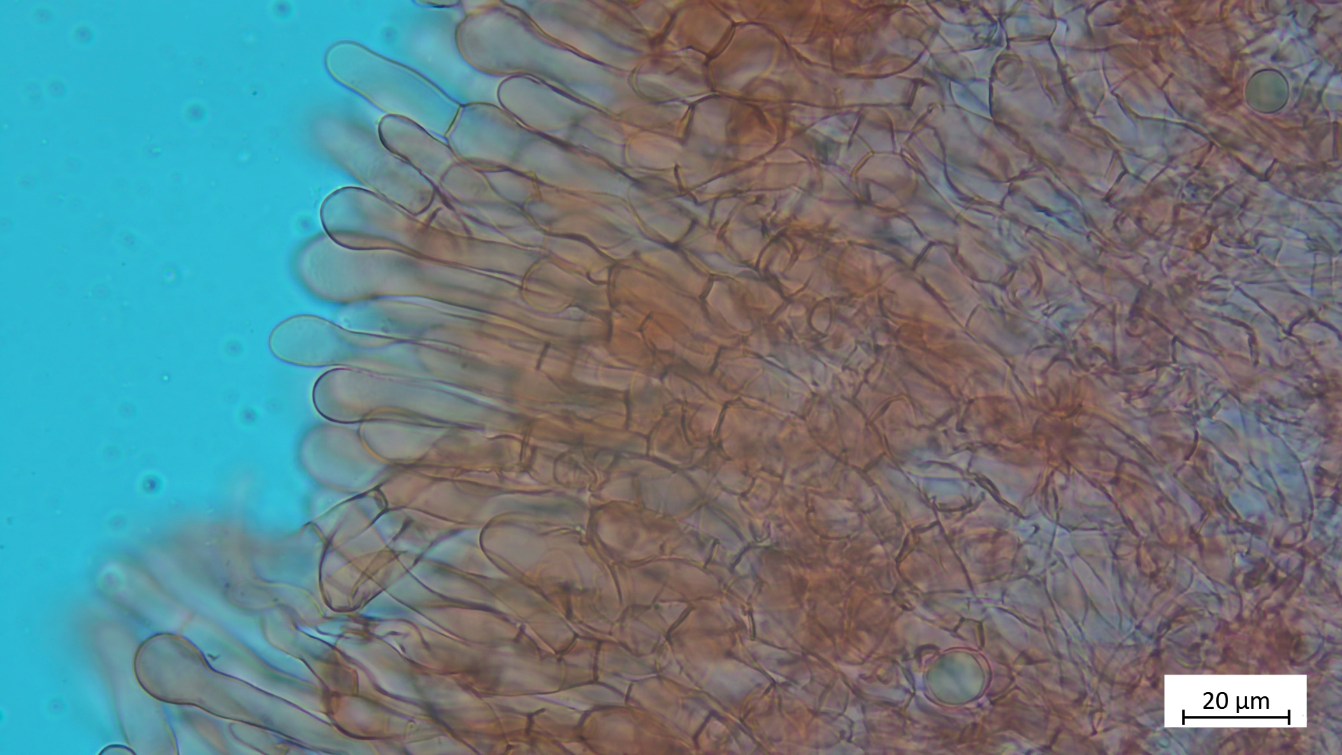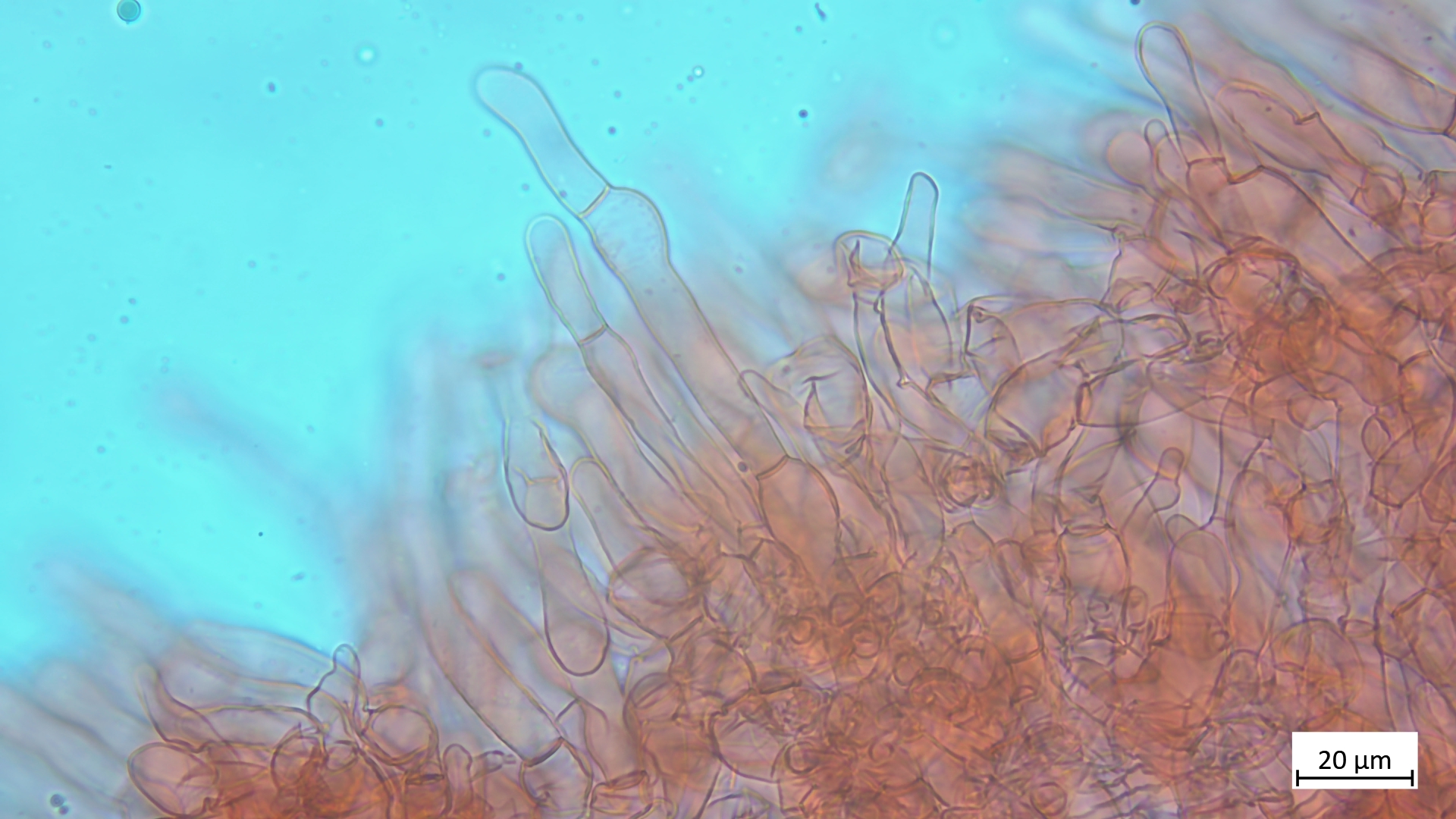 Excipulum eine intricata, nach außen dann Zellen in Reihen mit keulenförmigen Endzellen: