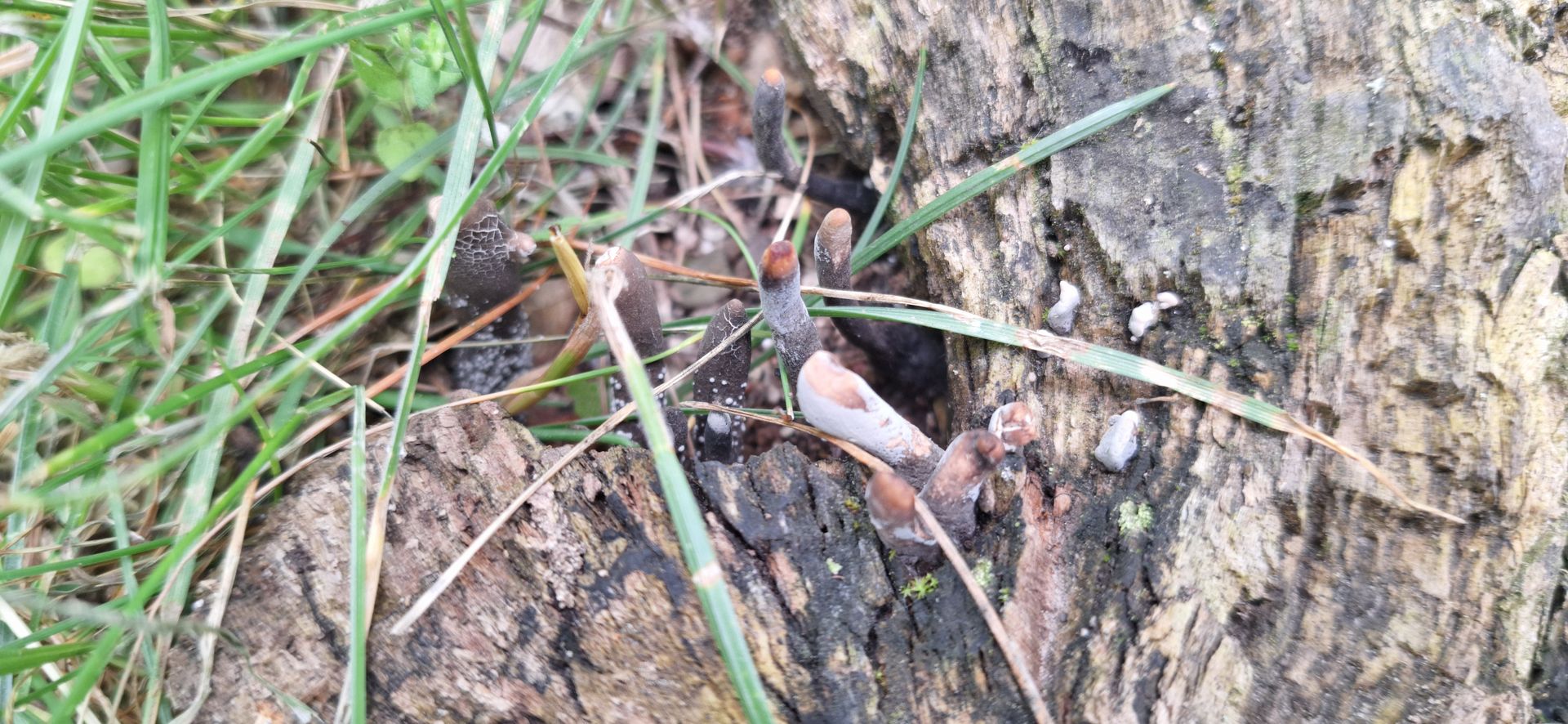 Hab versucht, da was raus zu kriegen mit Literatur und bin irgendwie bei der Gattung Xylaria - Holzkeulen gelandet, aber welche Art, kann ich nicht sagen.