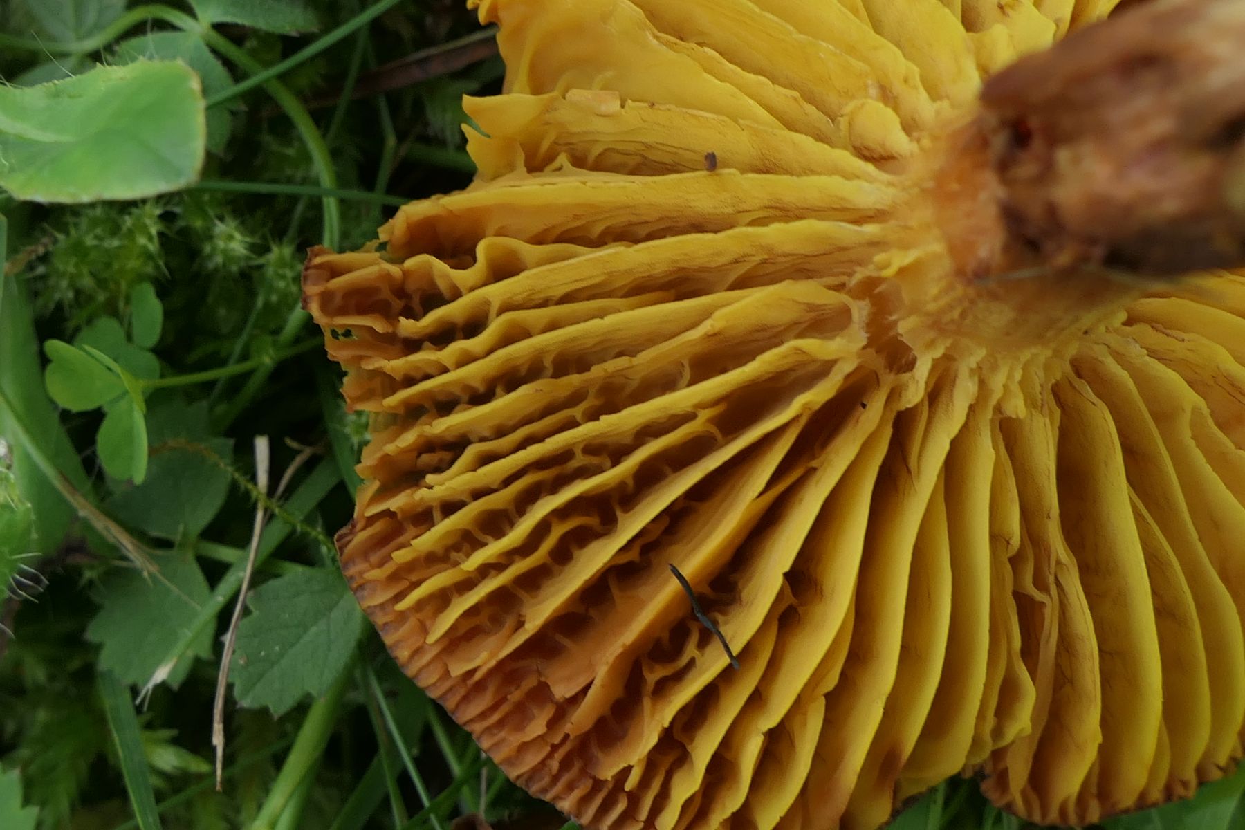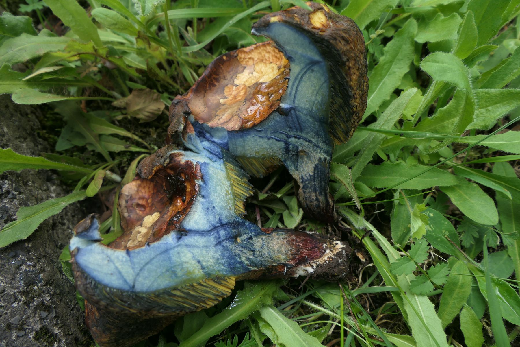 Erstaunlich ist das extrem frühe Vorkommen einiger Arten bereits jetzt im Mai. So ist für den Schwarzblauenden und für das Goldblatt in der Literatur (z.B. Gminder, Karasch) ab Juli angegeben. Da setzt sich ein Trend fort in diesem Jahr, extrem frühe und kurze Erscheinungszeiten der Pilze nach meinen Beobachtungen.