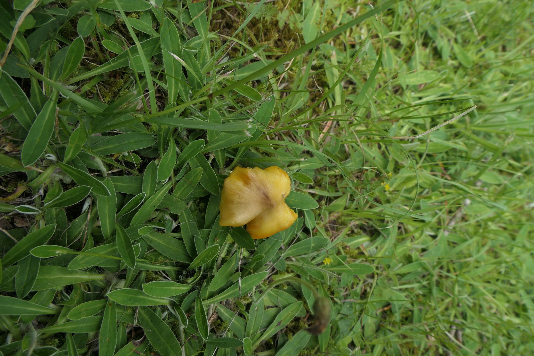 03 Hygrocybe acutoconica - der safrangelbe Saftling (vereinzelt - leider kein ganz ansehlicher Fruchtkörper dabei)