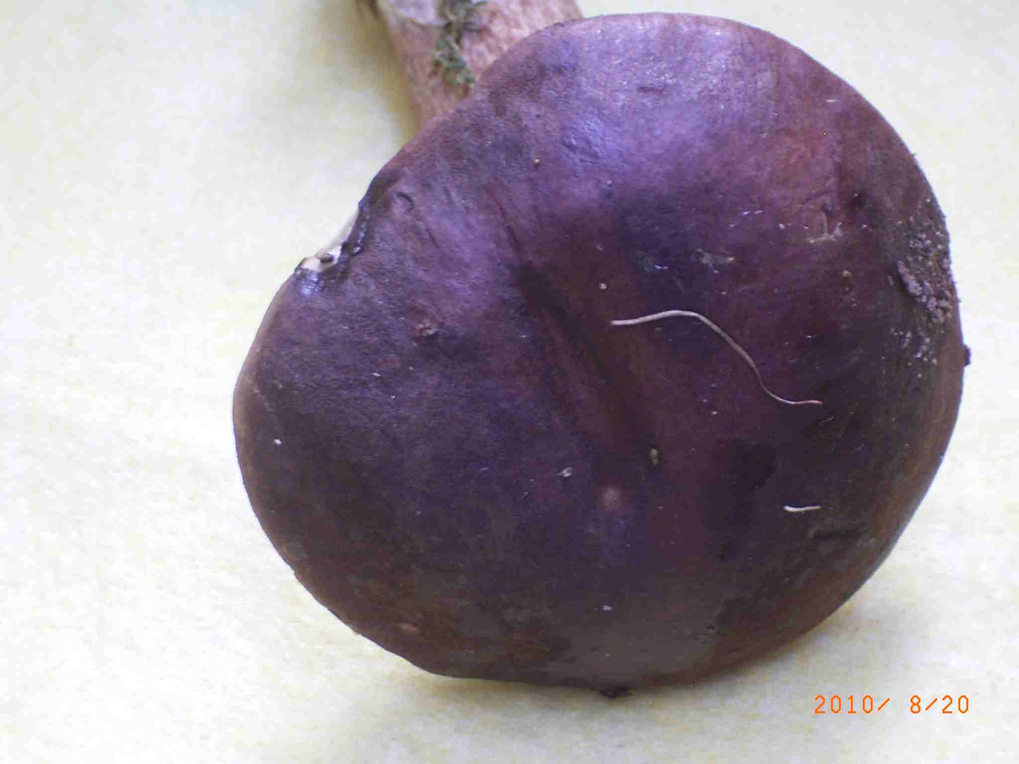 Holziger Stiel leicht rötlich/bräunlich gesprenkelt unter dem Hutansatz gelblich bis weißlich, Anschnitt und berührung am Schwamm führt zu einer bläulichen verfärbung.