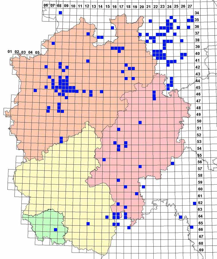 Die Daten sind sicher schon ziemlich alt, aber das muß ja nicht zwingend was heißen. Klick auf die blauen Quadrate und es wird die regionale Karte angezeigt und darüber stehen die exakteren Daten vom Fundort, auch wer da wann was gefunden hat.