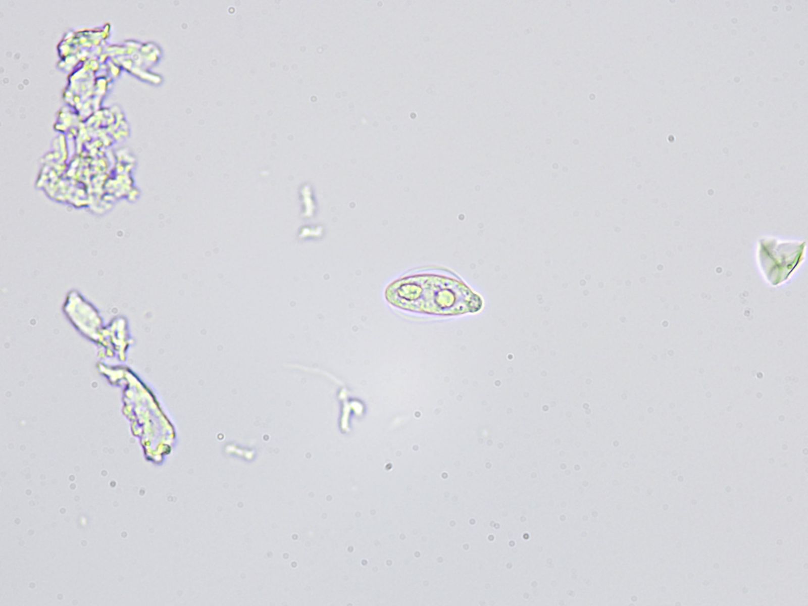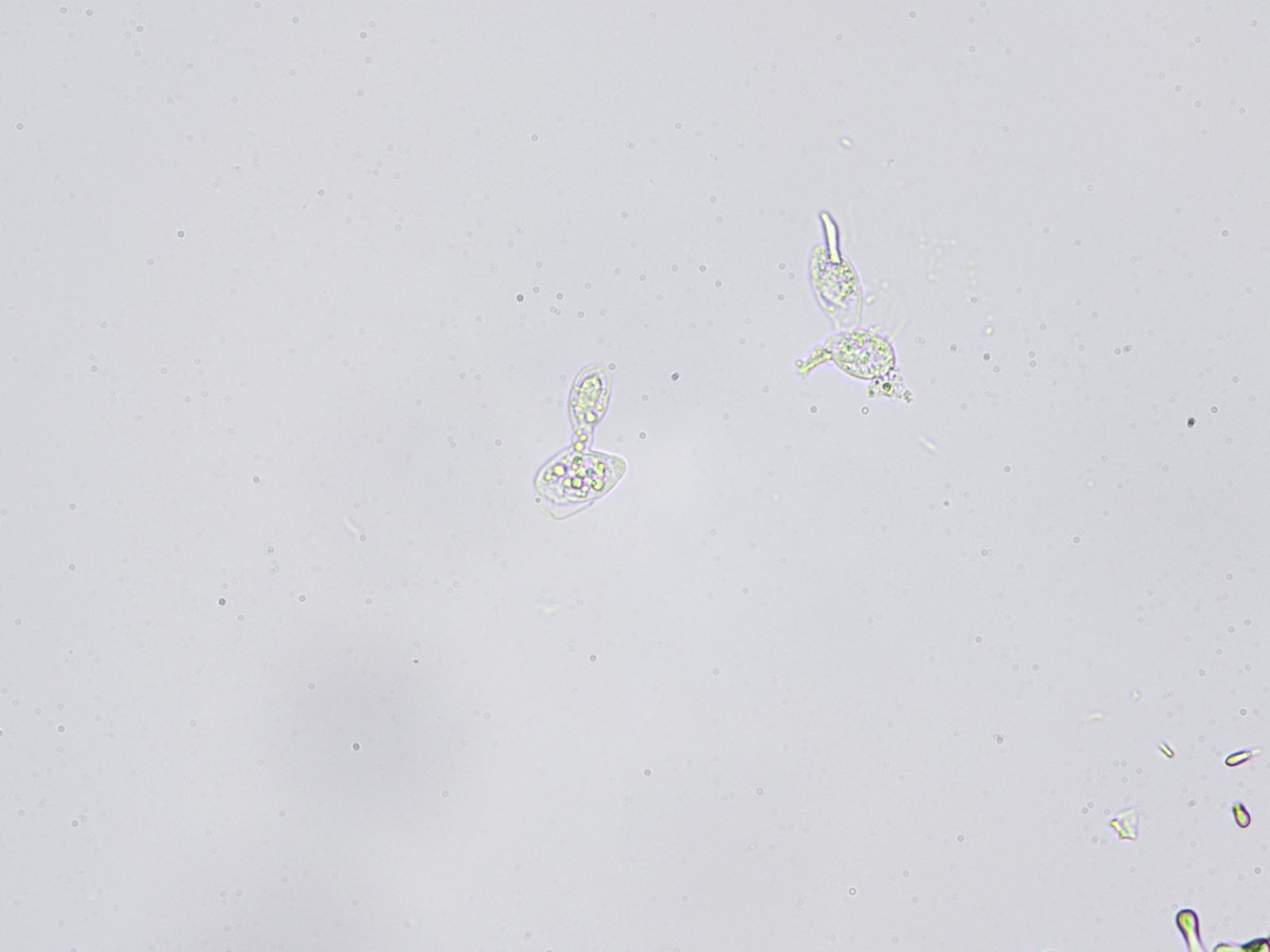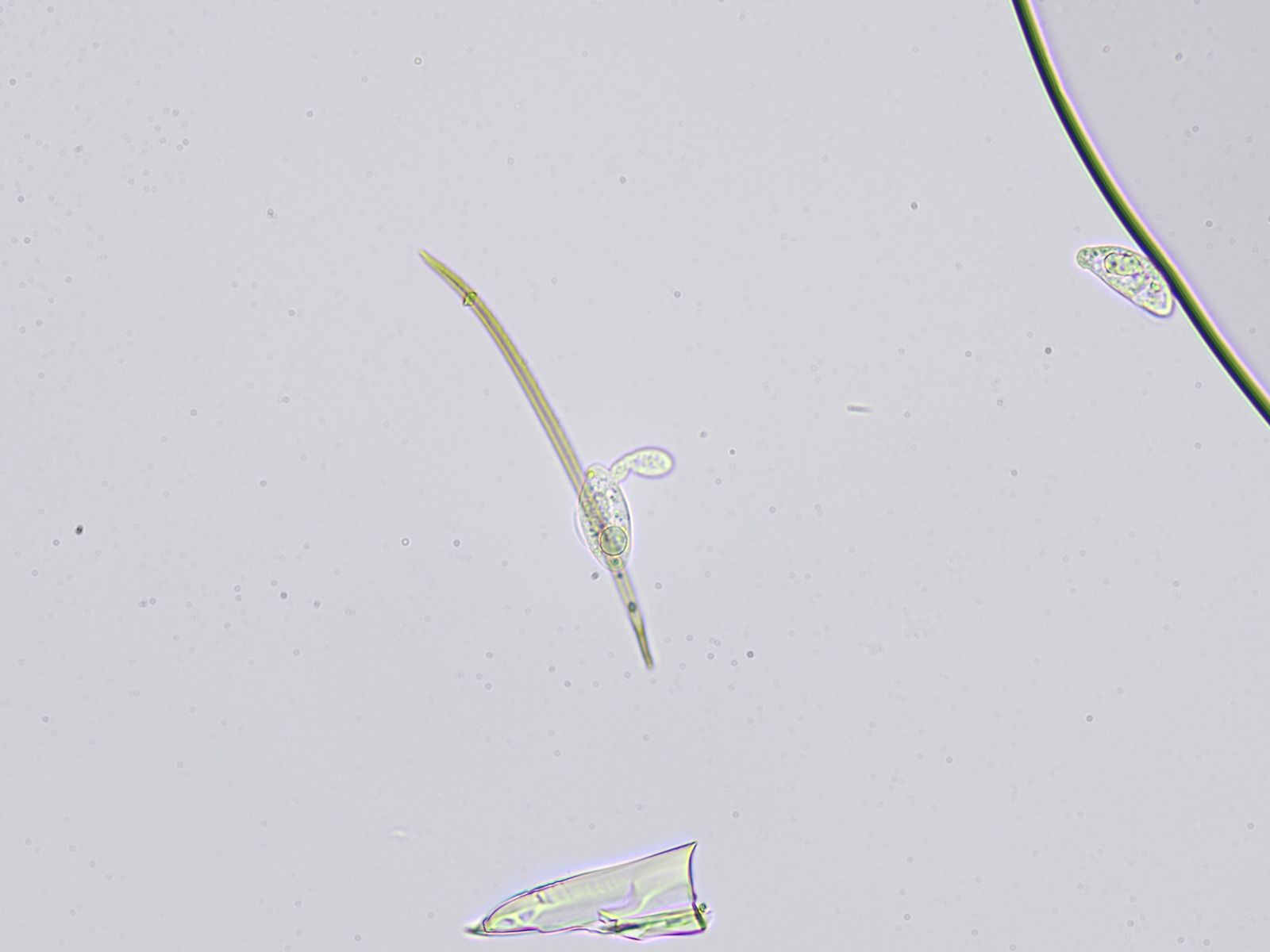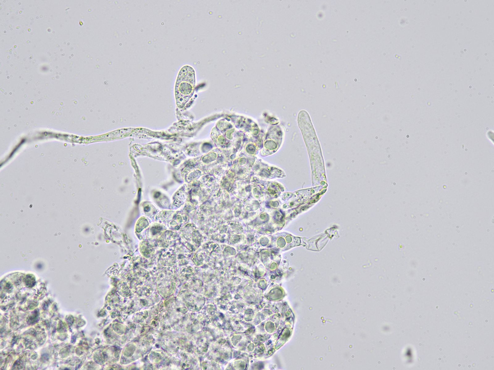 manche Primärkonidien schienen von einer Art hyaliner Hülle umgeben zu sein, leider habe ich keine Färbungen getestet um sie näher zu charakterisieren (Mucus etc).