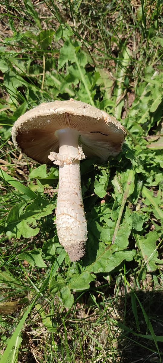 Fundort ist der Schlosspark von Schloss Marchegg (Niederösterreich). Der Geruch wurde mit kräftig, würzig und stark pilzig beschrieben. Aufgrund des Fundortes (Wiese, keine Bäume in unmittelbarer Nähe, außer einem Tulpenbaum etwas weiter weg) und des schuppigen Stiels vermutete ich den Schuppenstieligen Wulstling (Saproamanita vittadinii). Als weitere Optionen wurden noch Amanita echinocephala, Amanita strobiliformis und Saproamanita codinae vermutet.