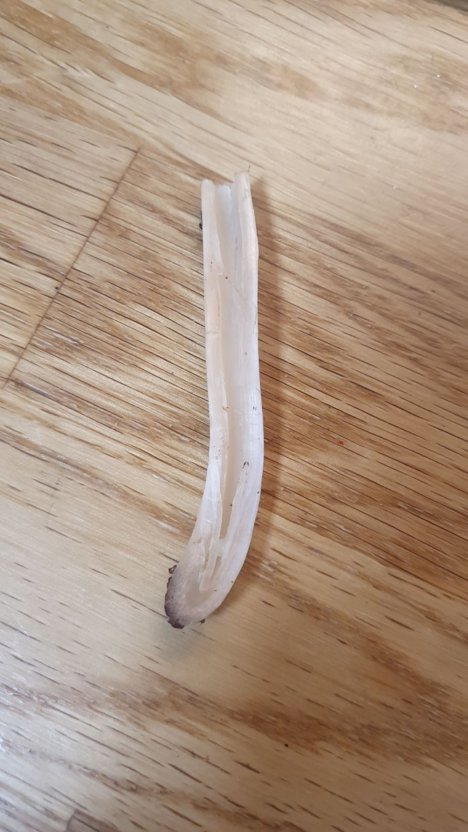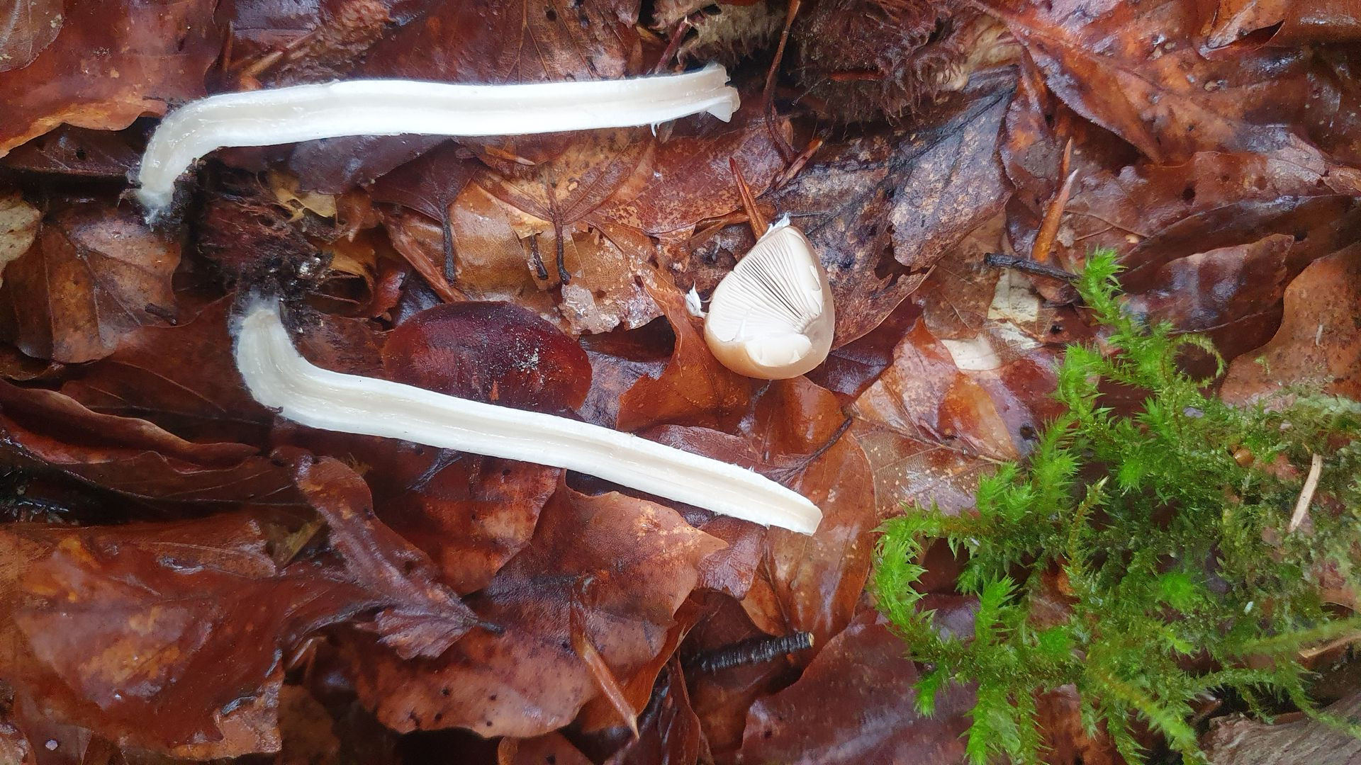 Stiel: 10cm lang, 1cm breit, hohl, weiß, mit Ringzone, sah im unteren Teil auch etwas schuppig aus.