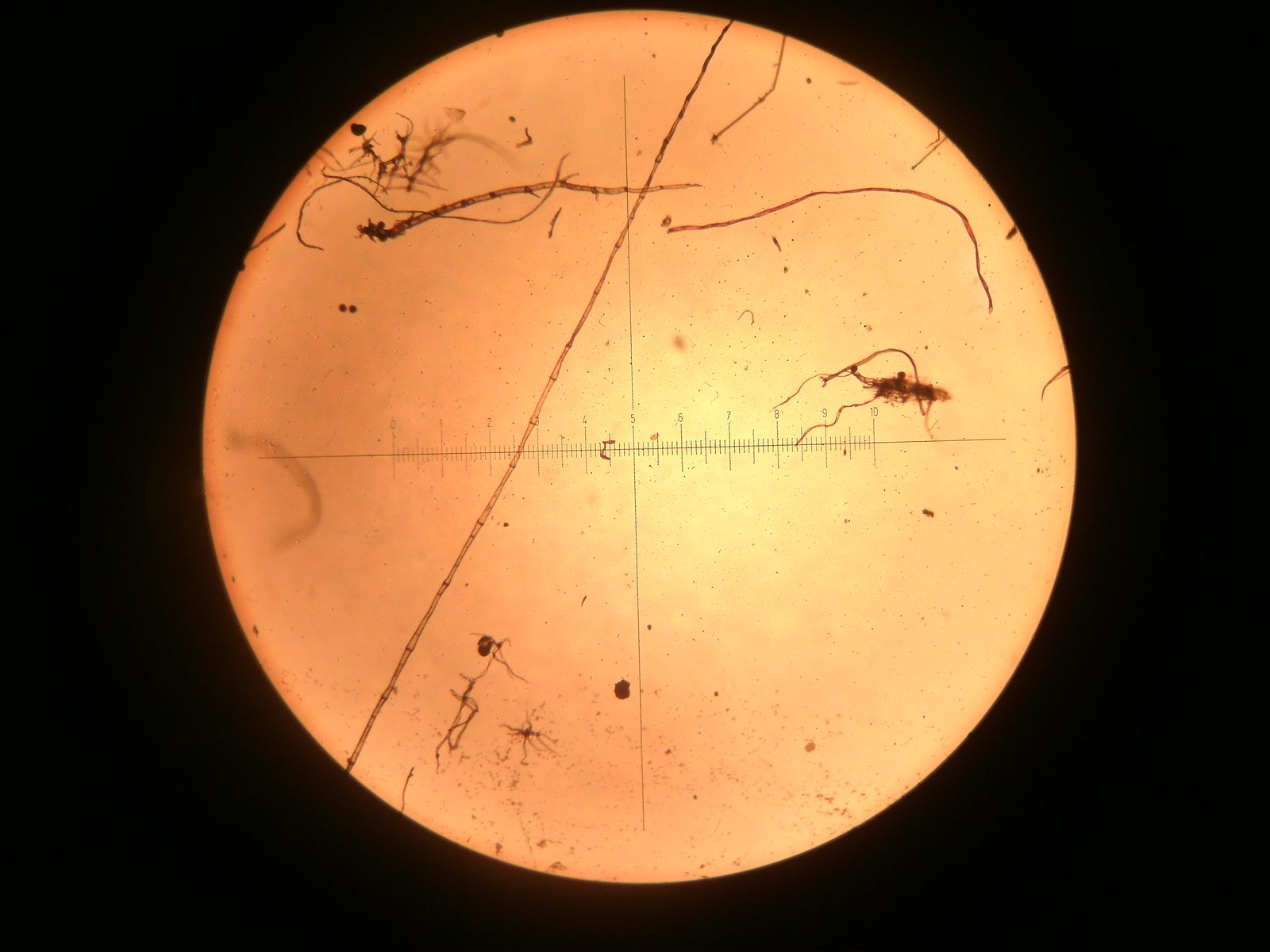 Weiter unten hab ich noch glaub ich ein Stück Pollen gefunden (großes Gebilde mit großen schwarzen Bobbeln auf beiden Seiten, aber da gabs hier schon irgendwo einen Beitrag, der das definitiv plausibel macht...)