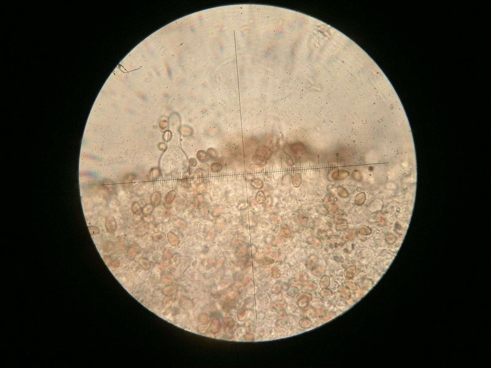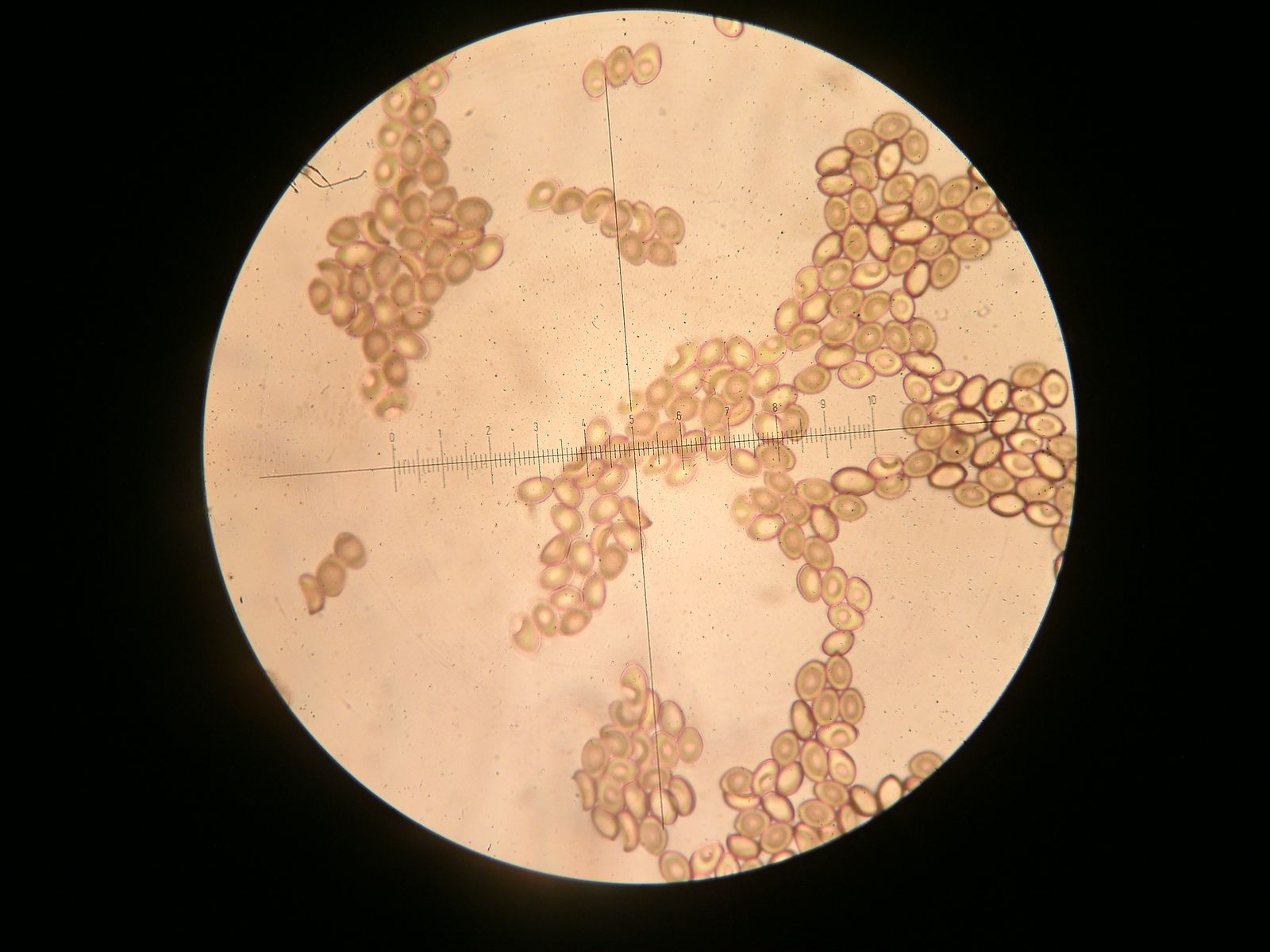 Ich habe folgende Maße (100x, Ölimmersion, in Leitungswasser) gefunden (N=10 an 2 unterschiedlichen Stellen aus nem Sporenabwurf): 8.8-9.5±0.5-10.6 μm x 5.8-6.5±0.4-7.1 μm, Q=1.5
