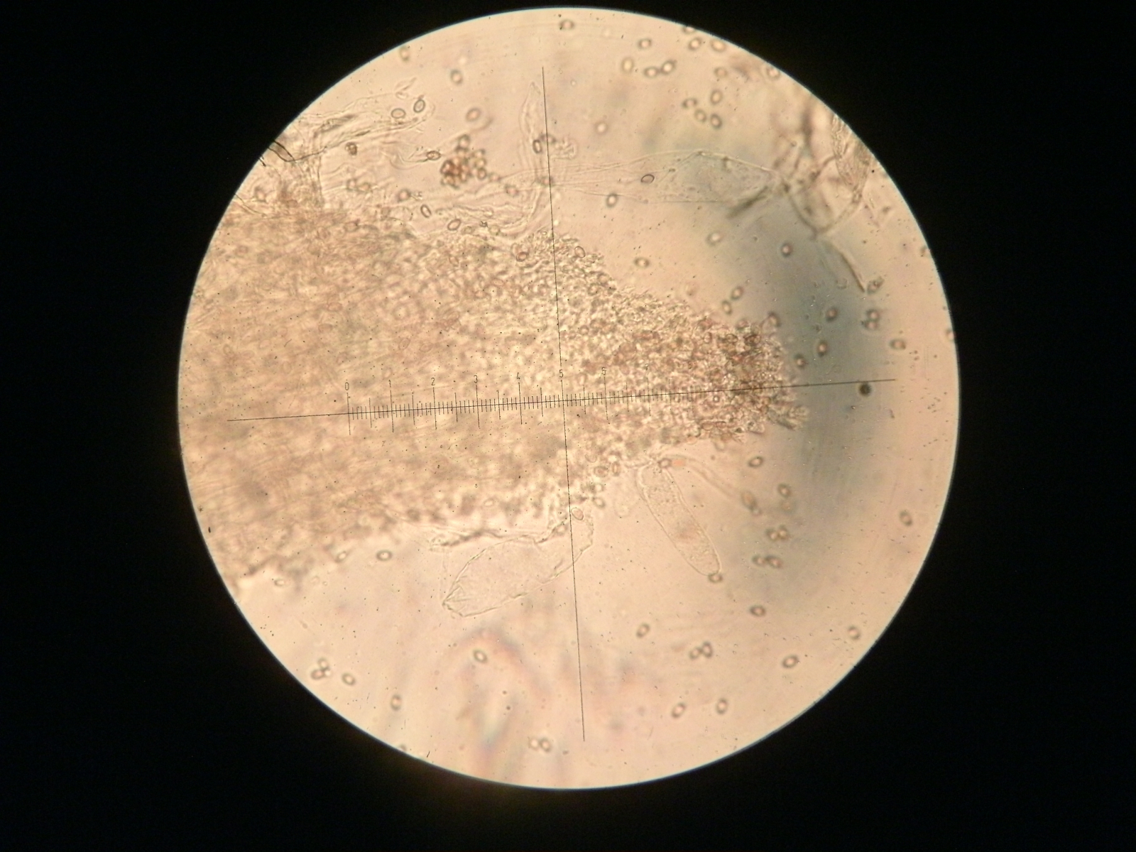 Dafür waren die lageniformen(???!) Zystiden, wo auch immer die dranhingen, sogar halbwegs fotogen.Ist es auch hier wieder nötig, dass ich dünner präpariere um die Länge zu finden oder gibt es da andere Tricks?