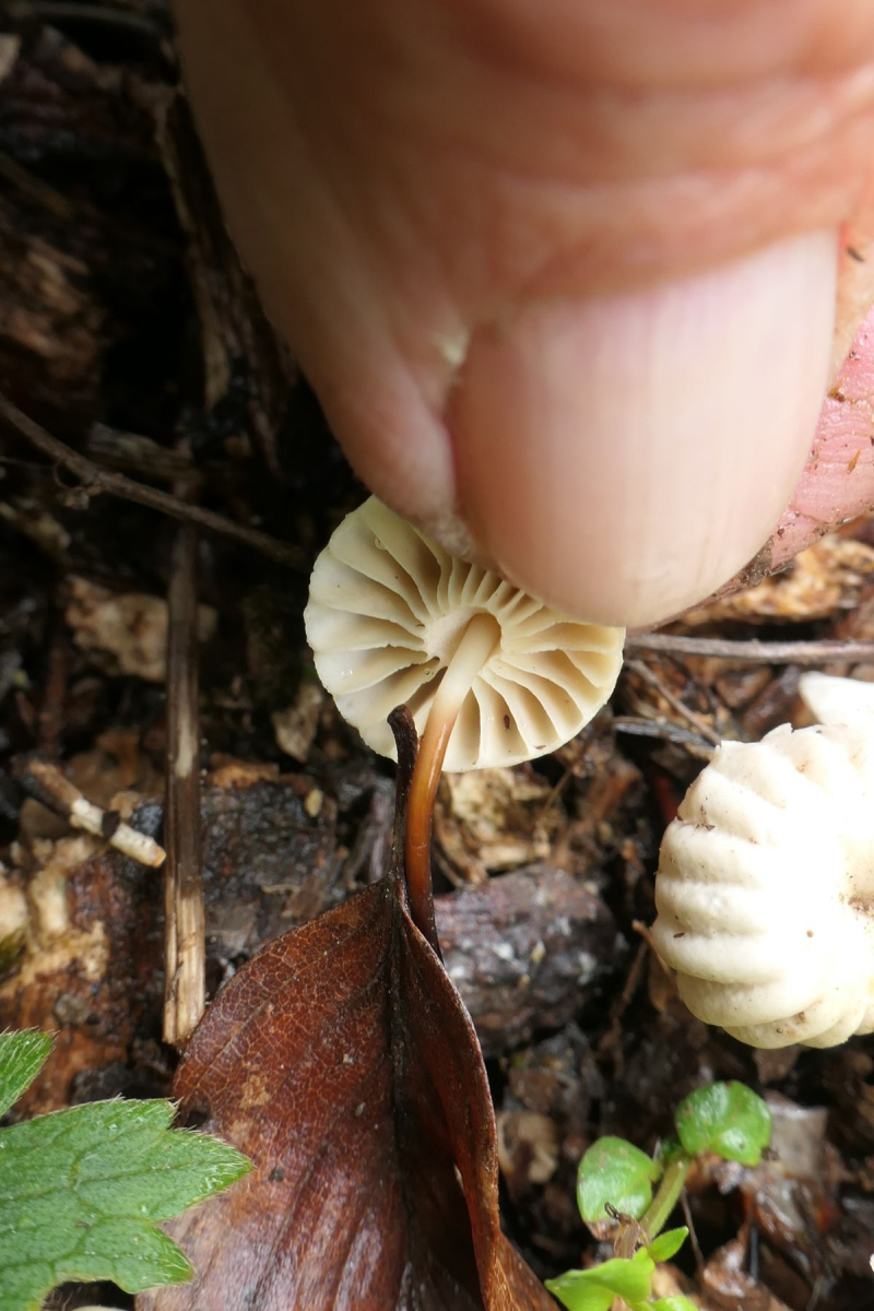 Holzstückchen gewachsen ist wahrscheinlich Marasmius rotula