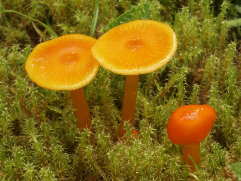 es zeigten sich zwei Exemplare von Hygrocybe helobia (Knoblauch-Saftling)