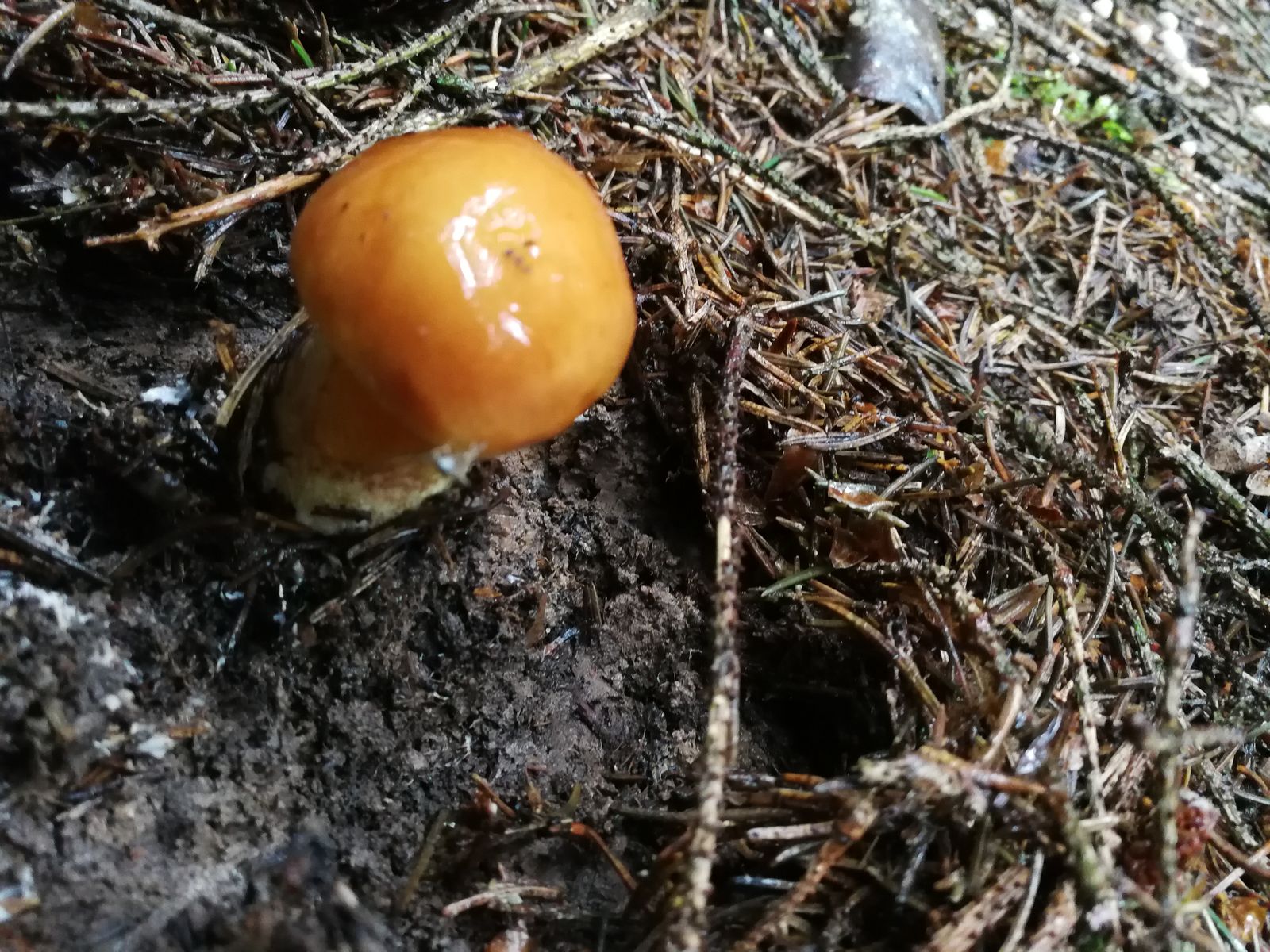 die Orangen erinnern von oben an den Goldröhrling, da spricht auch die gelblich überreifte Stielbasis dafür. Das ist natürlich keine Bestimmung sondern eine Vermutung.