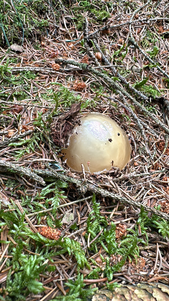 beim Spaziergang habe ich dieses etwas gefunden. Außen eine Art Gelee, innen ziemlich fest. Umgebung siehe Bild.