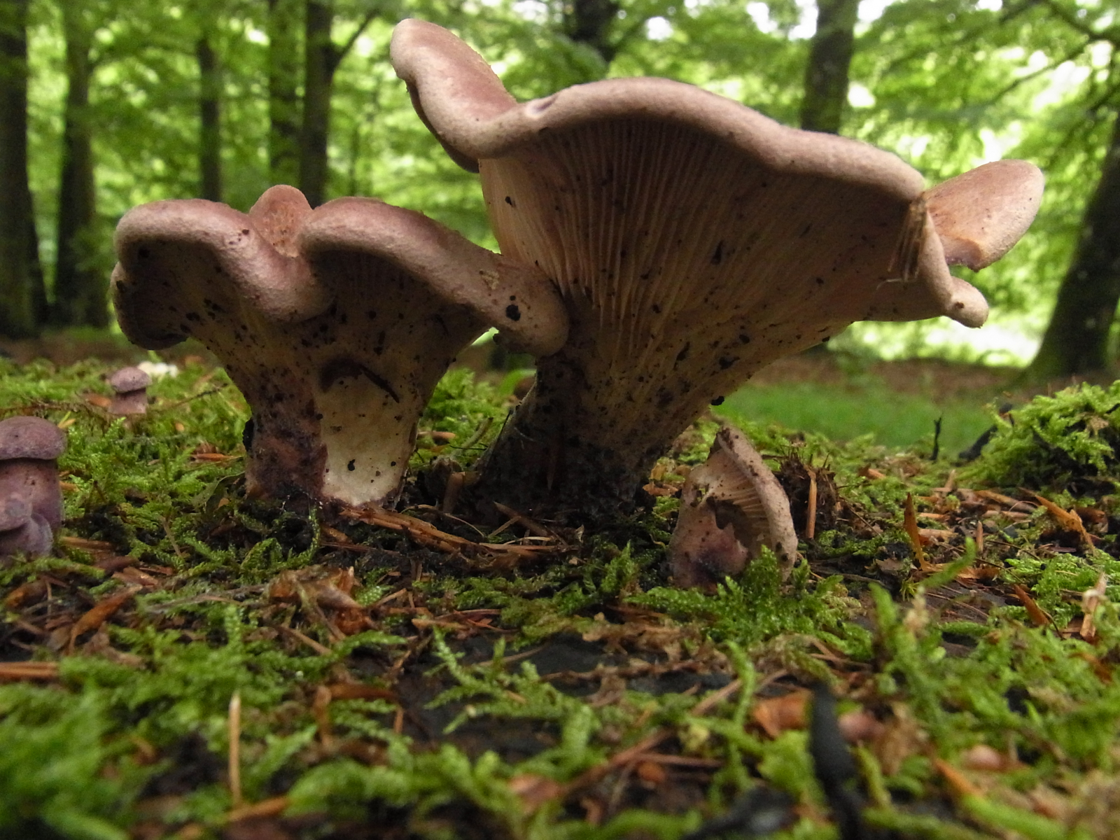 Der Pilz im jungen Stadium eher lila, nachher beige/cremefarben.