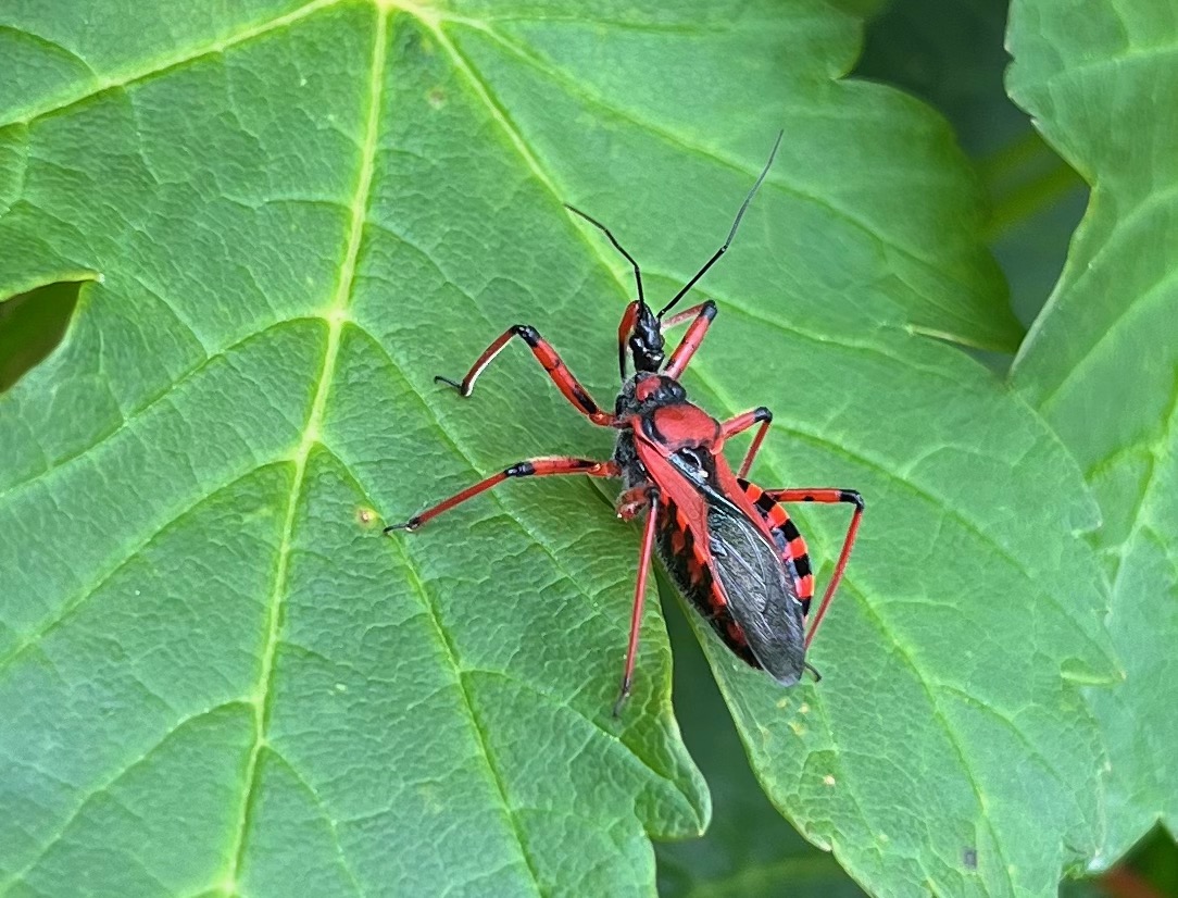 Eine schicke Rote Mordwanze. Die lebt räuberisch und ihr Stich soll recht unangenehm sein.