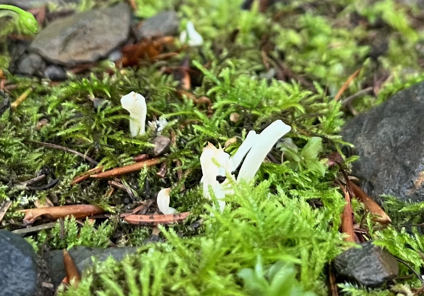Wenn frau ganz fix ist, also die Schnecken abhängen kann, sind auch ganz normale Pilzfunde möglich - wobei - Pfifferlinge sind ja nicht so lecker für Maden und Schnecken.der größere der Flockis ist schon wieder ein schimmlig.