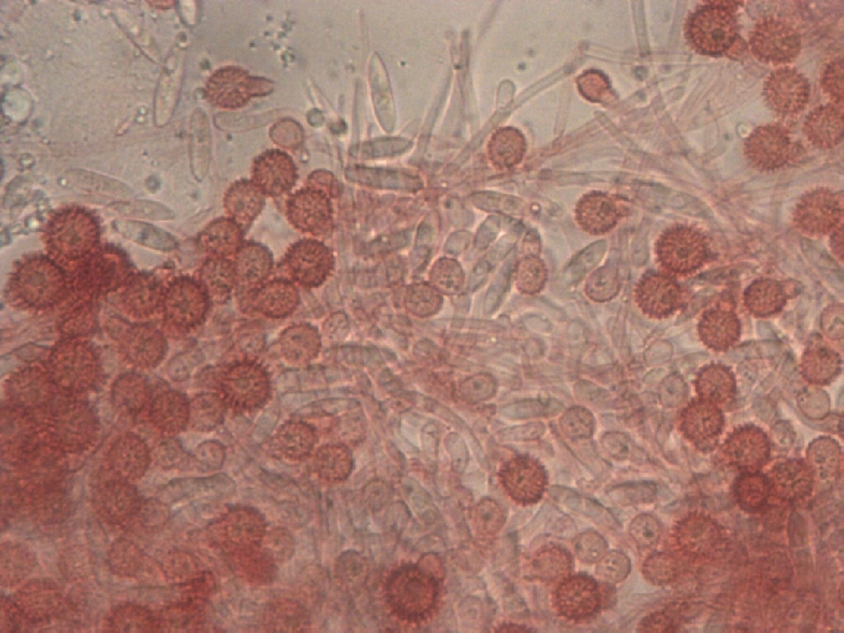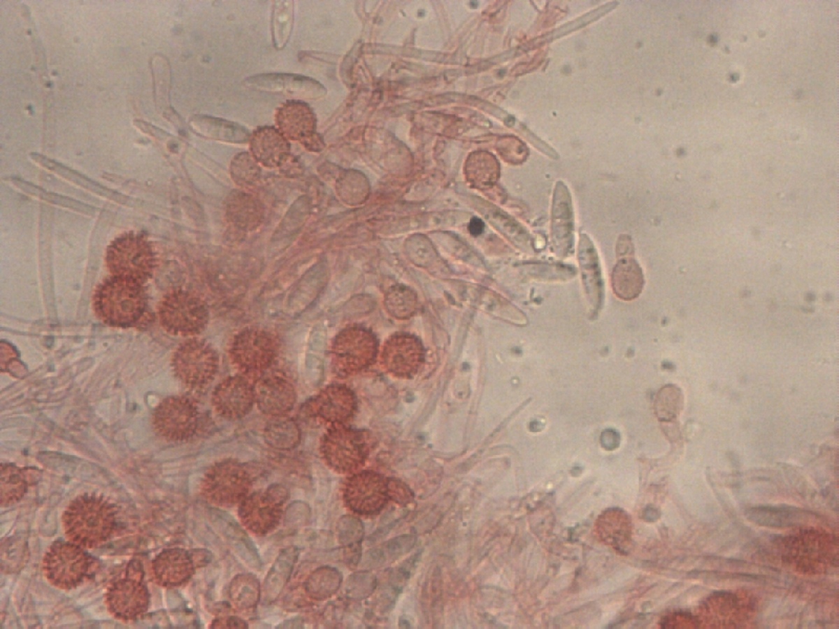 Ein kurze Blick in Mikros am späten Abend zeigte 10-12 mµ große stachelige Sporen