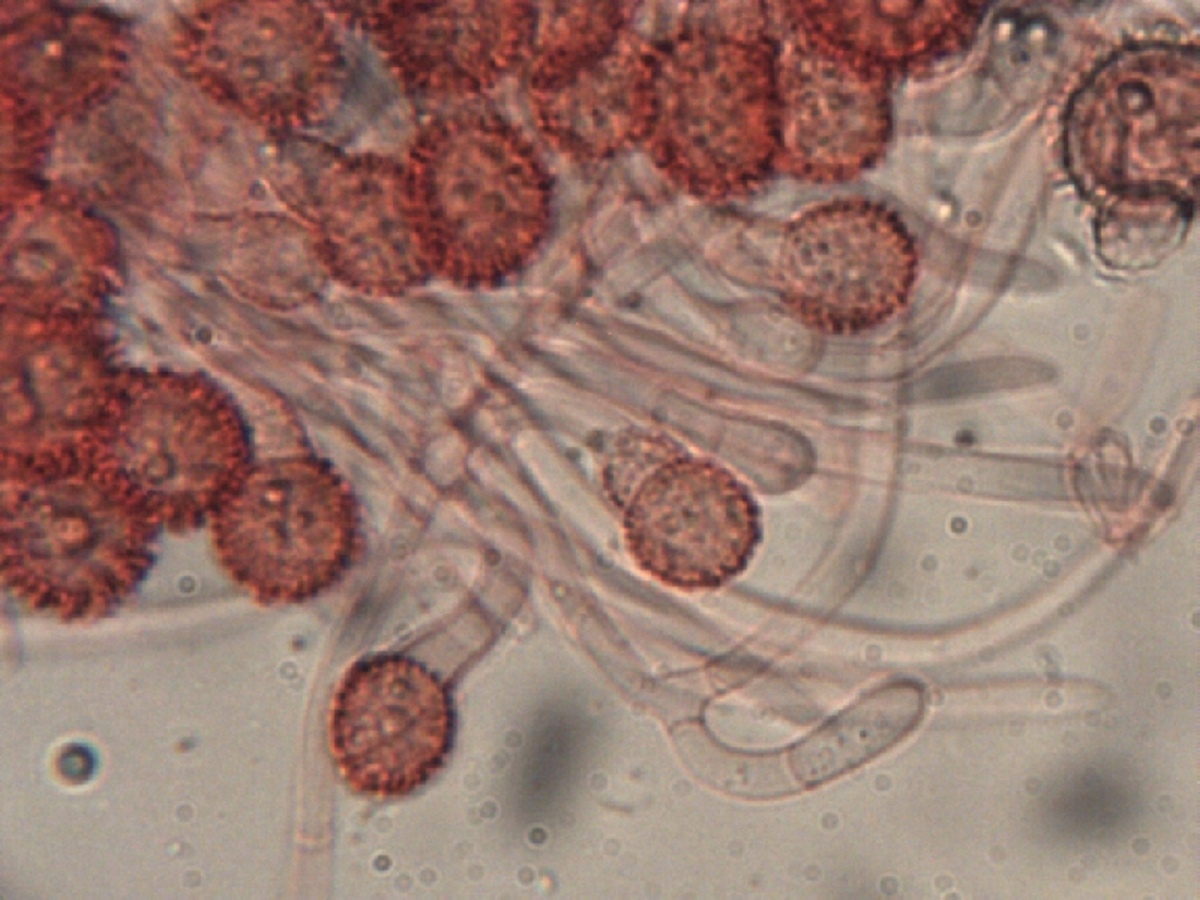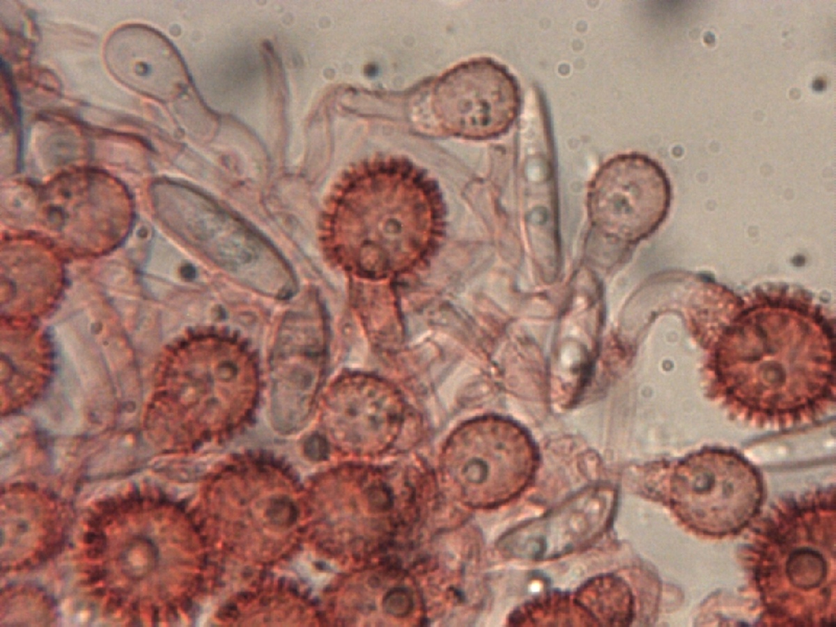 Hier noch weiter Bilder stärker vergrößert auf denen auch die Bildung der stacheligen Sporen zu sehen ist.