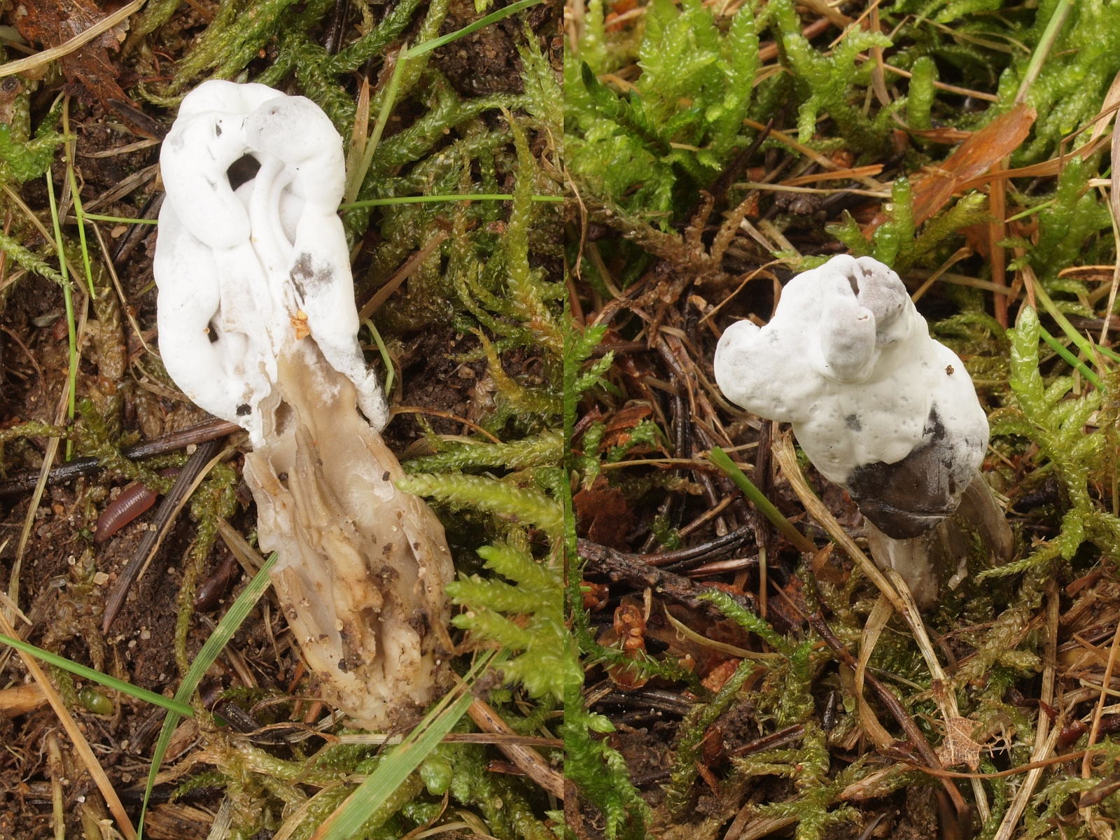 Helvella mit weißem Belag