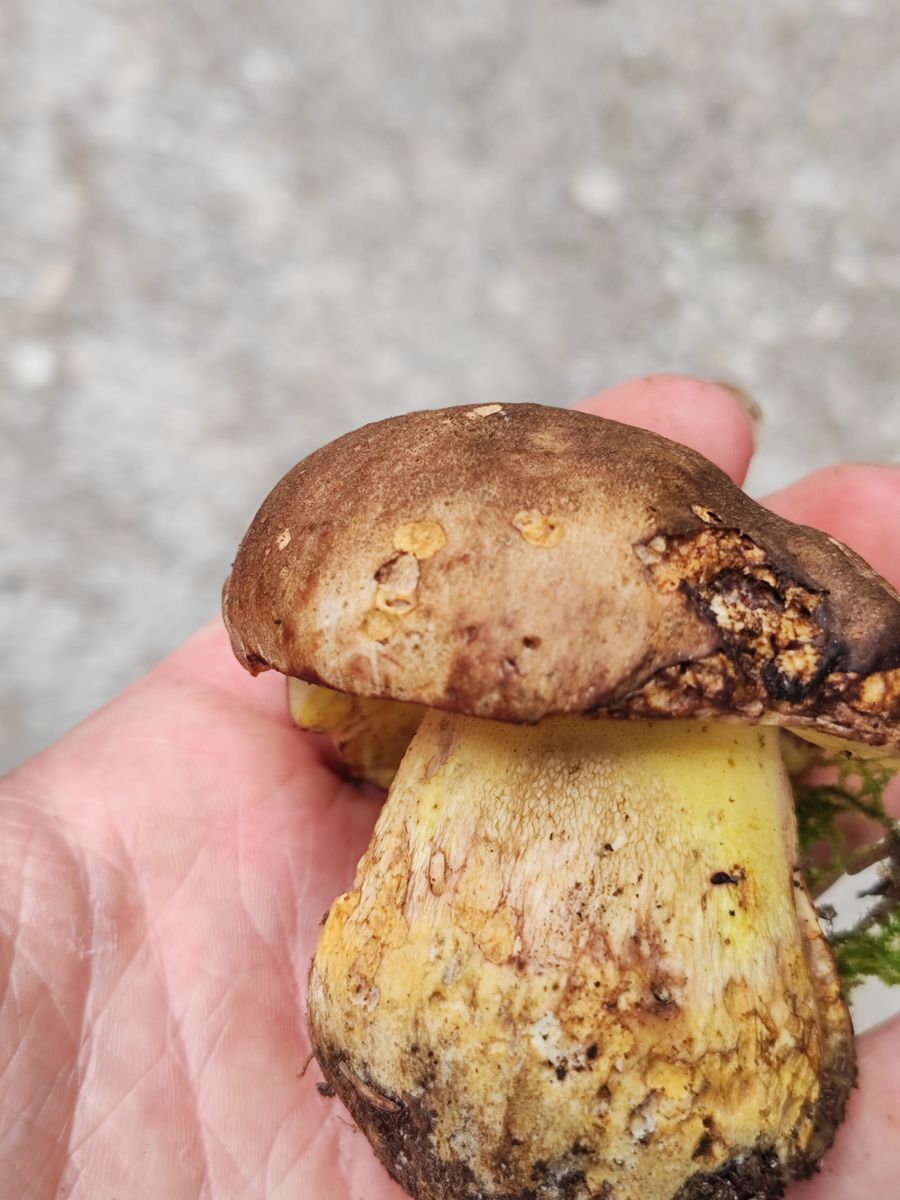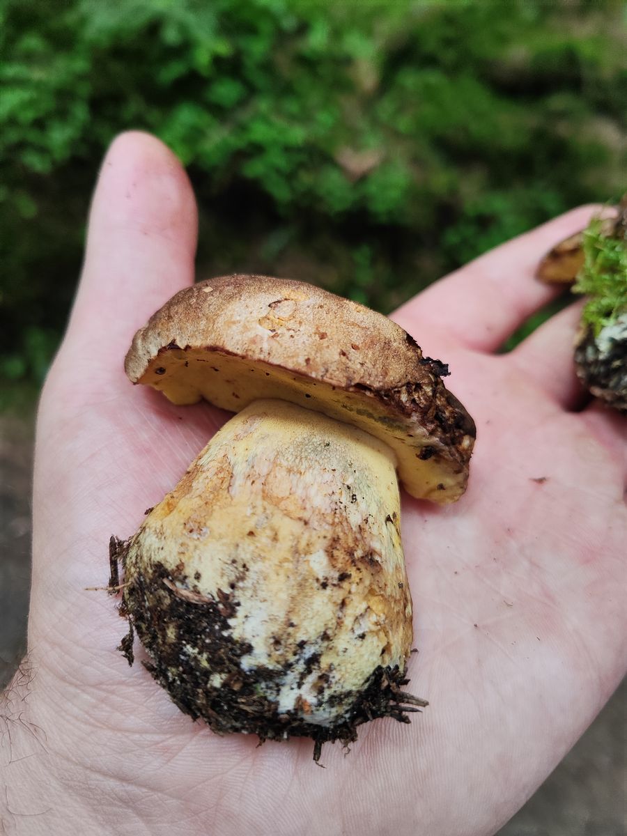 Nach noch einmal 5 Minuten waren sämtliche Verfärbungen wieder weg. Der Pilz riecht firsch unheimlich angenehm, leicht nach Steinpilz aber definitiv auch mit fruchtig, leicht citrusartiger Komponente. Mein Vergleich nach Geruch ist tatsächlich Lepiota brunneoincarnata, die rochen letztes Jahr sehr ähnlich. Ich hätte den als recht typischen Butyriboletus subappendiculatus abgestempelt. Interessant finde ich, dass dieser in den meisten Quellen die ich Finde als Partner der Fichte beschrieben wird. Bei meinen Funden war stets Tanne in der Nähe und meiner Meinung nach der wahrscheinlichere Partner. Ich kann mir vorstellen dass er unter anderem deshalb nach Norden hin seltener wird.