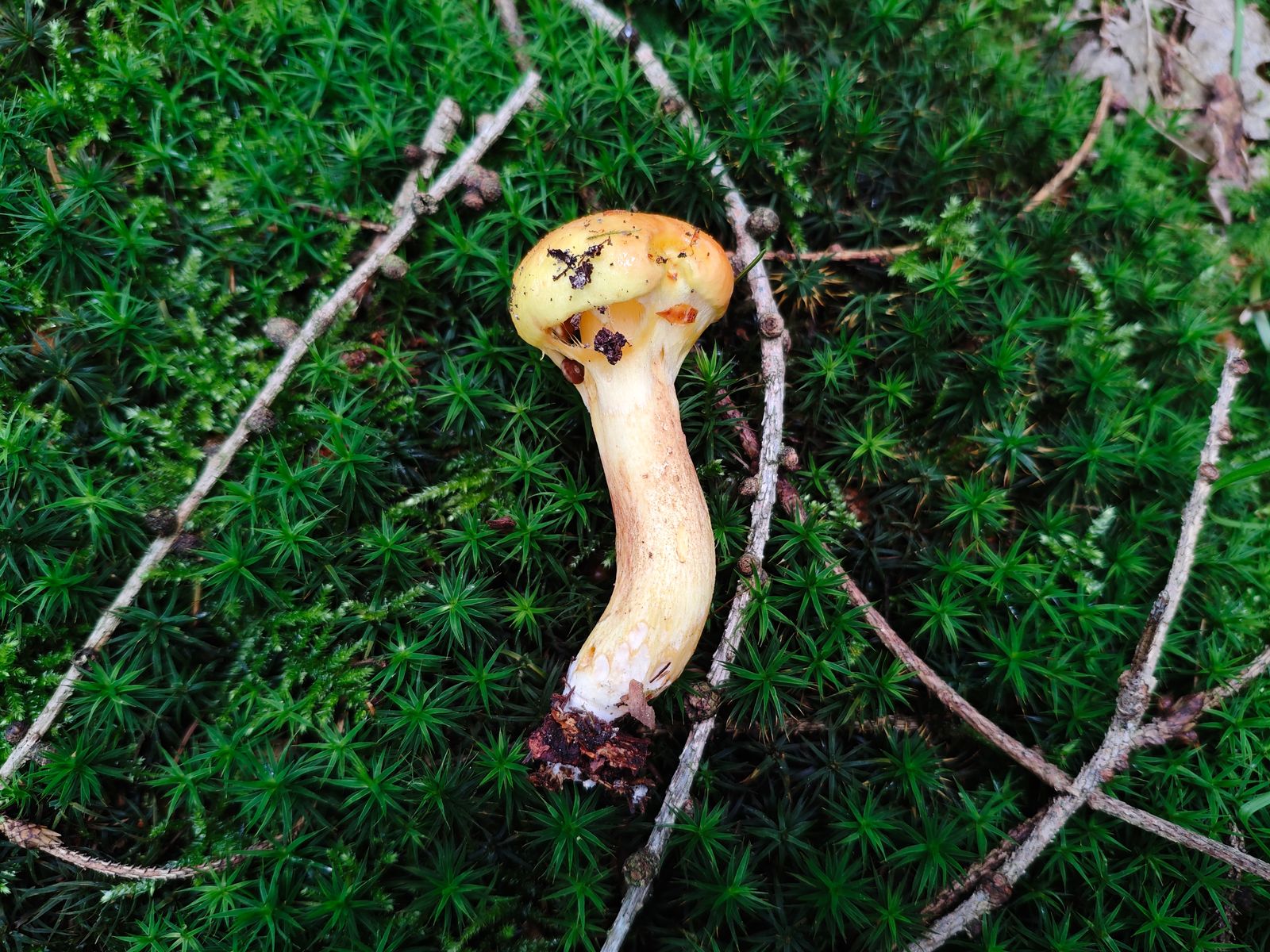 Die Röhrlinge wollen nach wie vor nicht wirklich. An den Steinpilzstellen tut sich aktuell nichts mehr und so bleibt es wie gewohnt bei den Goldröhrlingen, die recht zuverlässig an den Lärchen anzutreffen sind. Das abgelichtete Exemplar habe ich eingesackt, die restlichen Funde waren schon etwas älter oder zu sehr von den Schnecken in Mitleidenschaft gezogen.