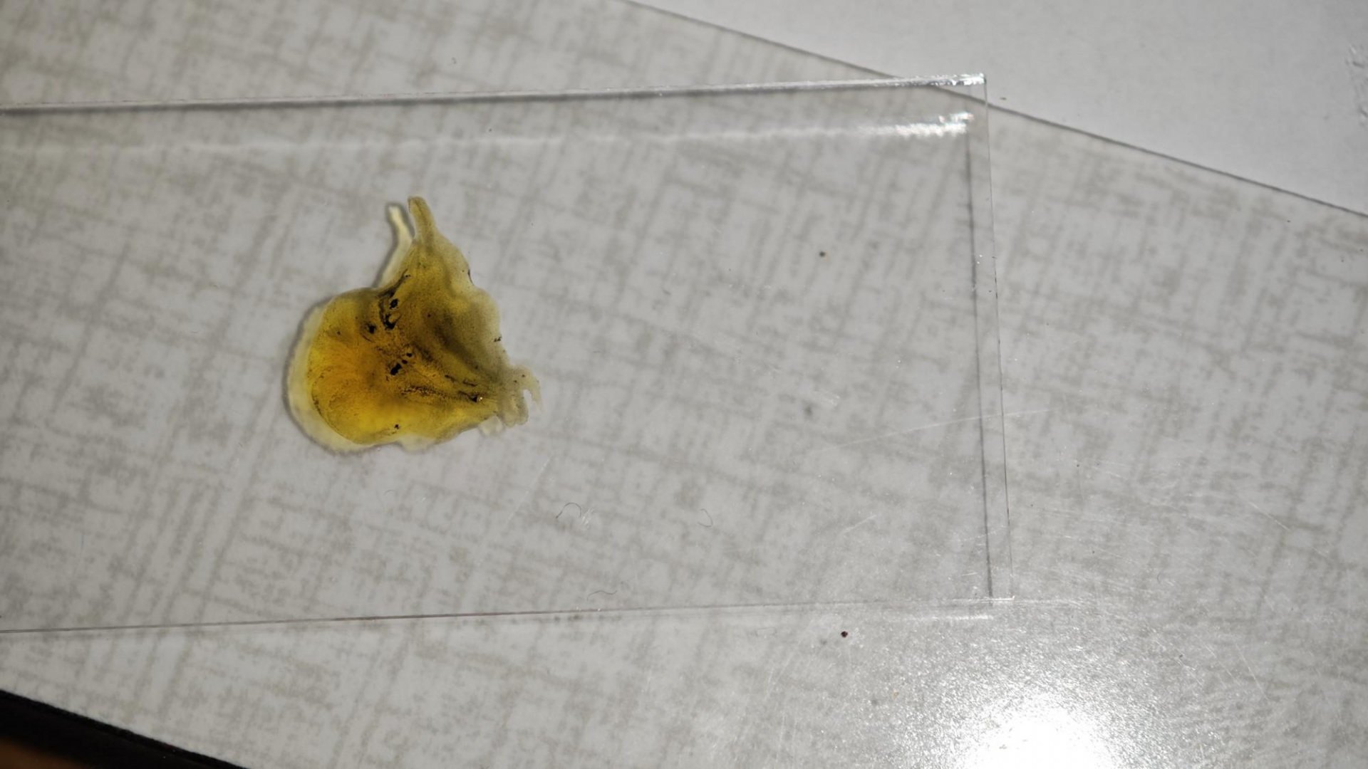 nimm mal nicht eine ganze Lamelle beim Mikroskopieren. Es ist vollkommen ausreichend ein winziges Stückchen von ca. 1 mm2 zu nehmen. Das lässt sich dann problemlos quetschen.