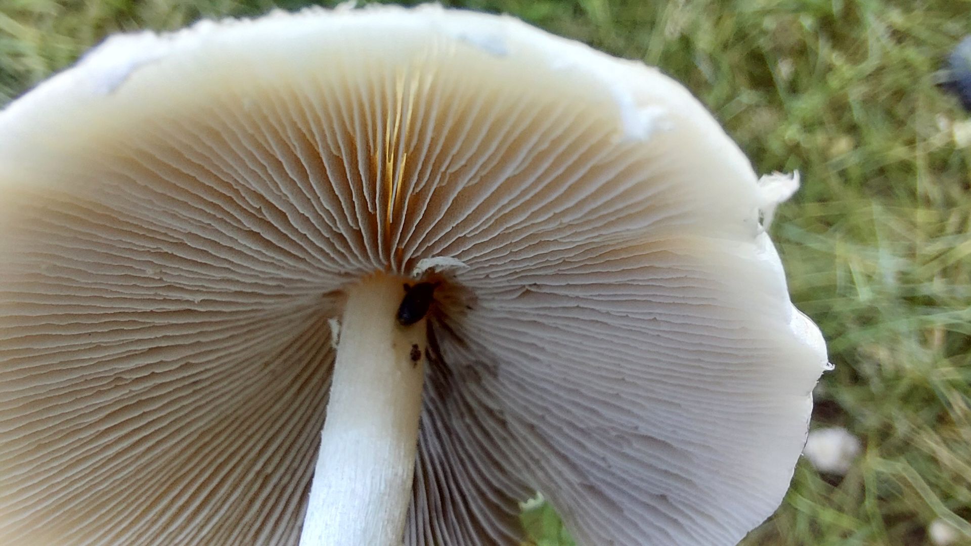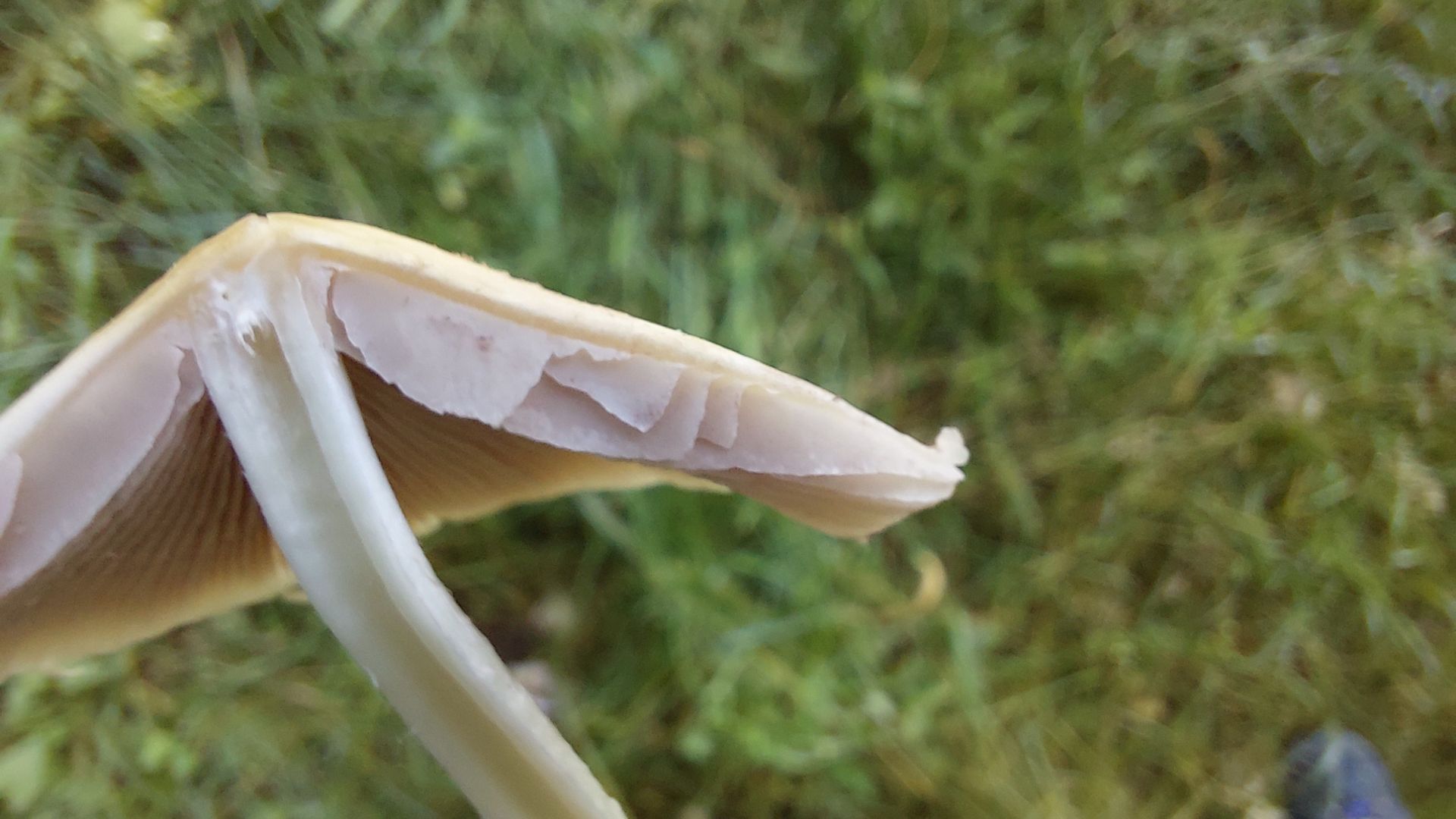 Lamellen schmal angewachsen, Hut dünnfleischig, Stiel hohl