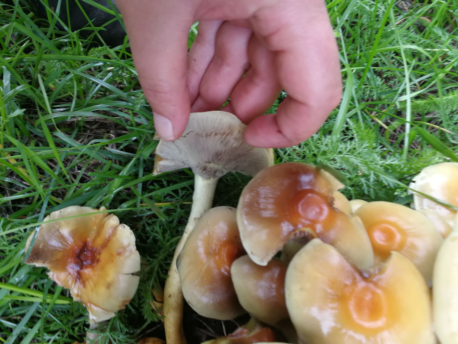 • Bei Nummer 2 sind mir die Stiele für den Rauchblättrigen Schwefelkopf zu hell gefärbt. Zumindest die, die ich bisher gefunden habe, waren alle deutlich dunkler im Farbverlauf nach unten. Zur Basis hin in ein deutliches warmes und eher dunkles Braun übergehend. Auch der Knubbel auf den Hüten irritiert mich. Das habe ich so bei denen noch nie gesehen. Vielleicht hat dazu noch jemand anderes was beizutragen?